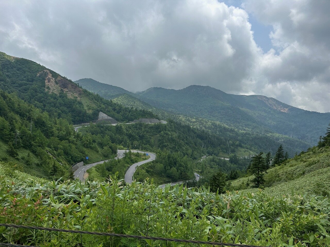ややいって日本の国道最高標高地点を過ぎ、道は下りに転じます。