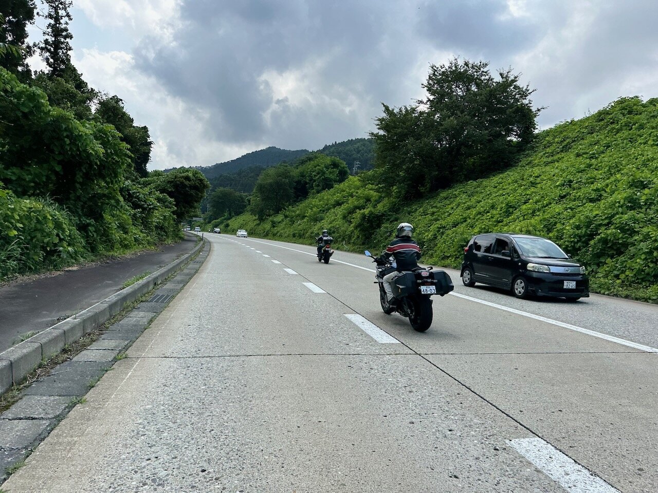 交通を乱さないように走行し、時に早い車に譲りつつ、遅い車をスムーズに抜いていく隊列走行は複数人ツーリングの醍醐味です。