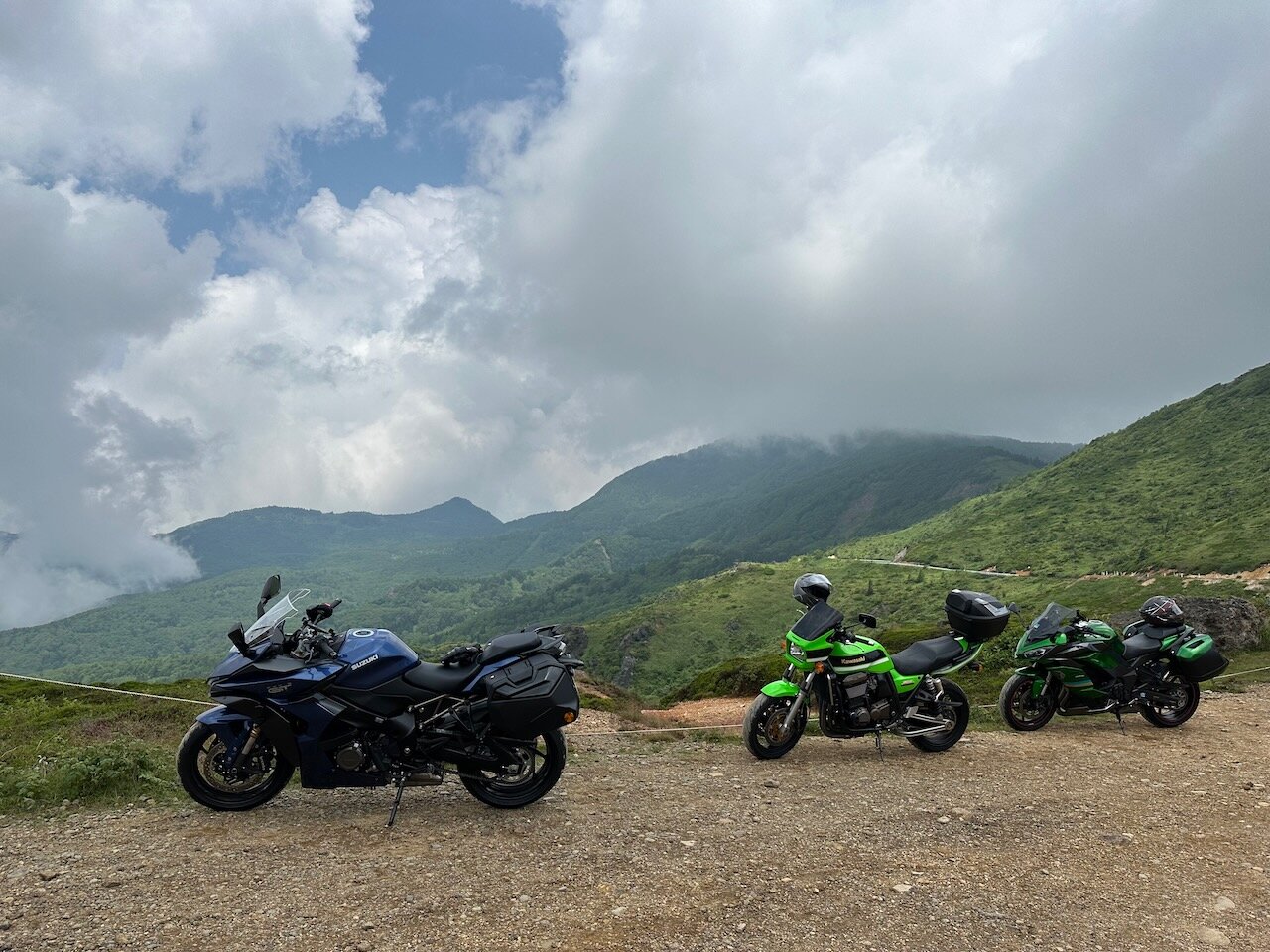 今日のメンバーは先頭の画像の通り、ZRX1200R・GSX-S1000GTと、いつものおなじみの顔ぶれ。