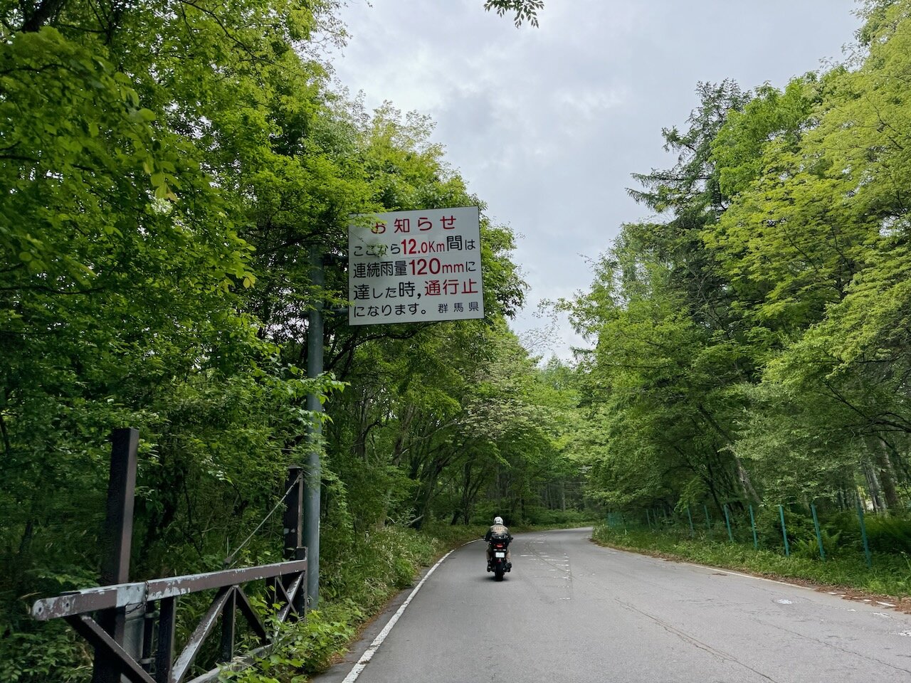 大雨規制の告知看板を過ぎたら本格的な峠道のはじまりです。