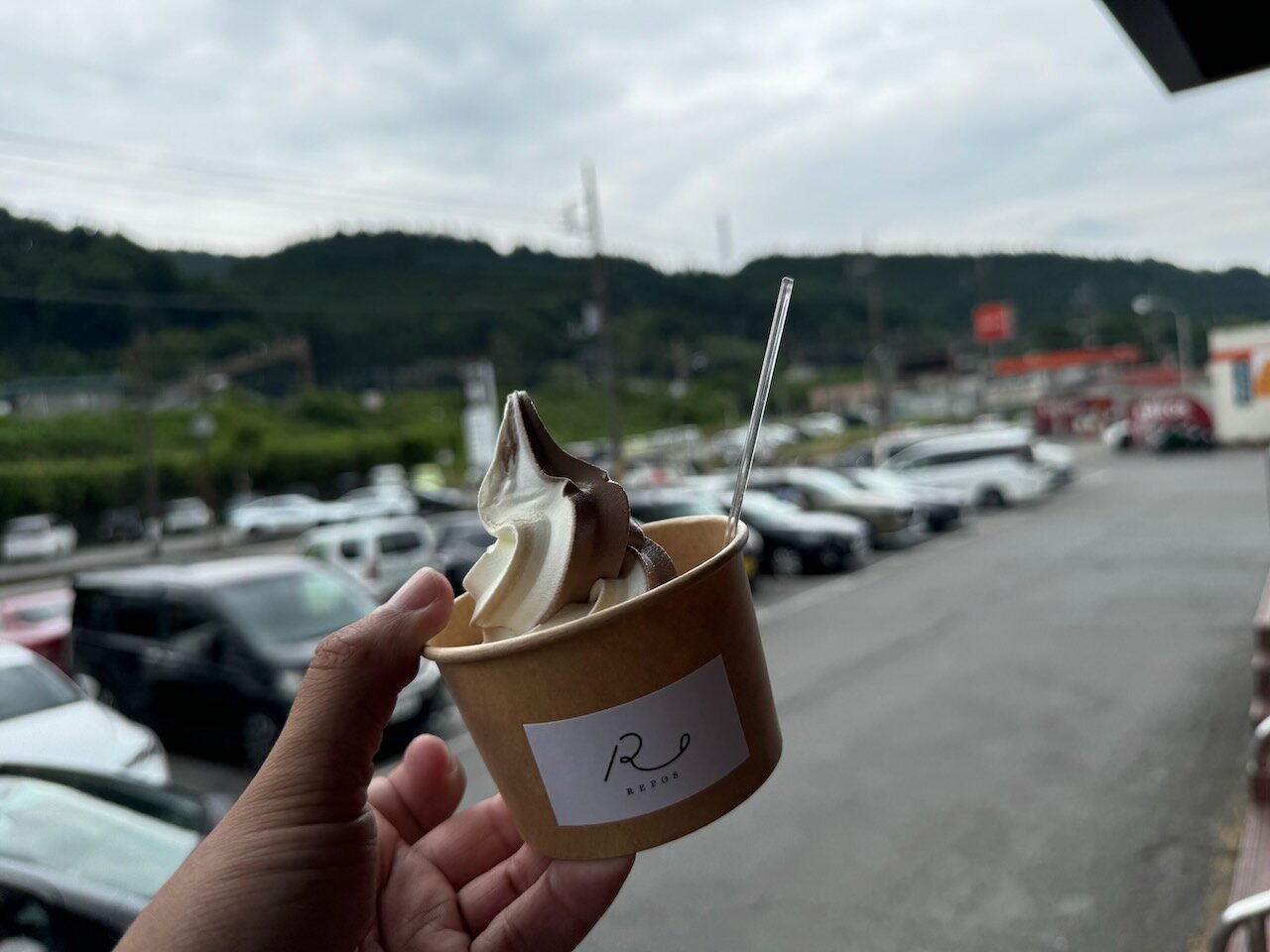 峠にあるロッジ花紋でソフトクリームブレイクとします。