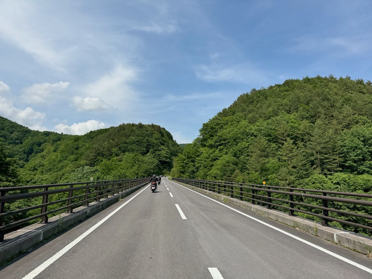 朝の気持ち良い木漏れ日の中をスイスイと隊列走行するのは、ザ・マスツーリングといった趣です。