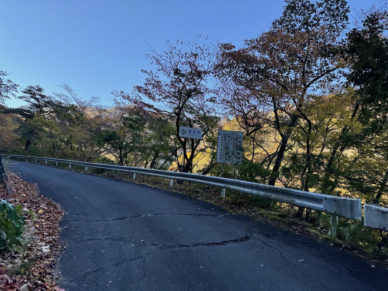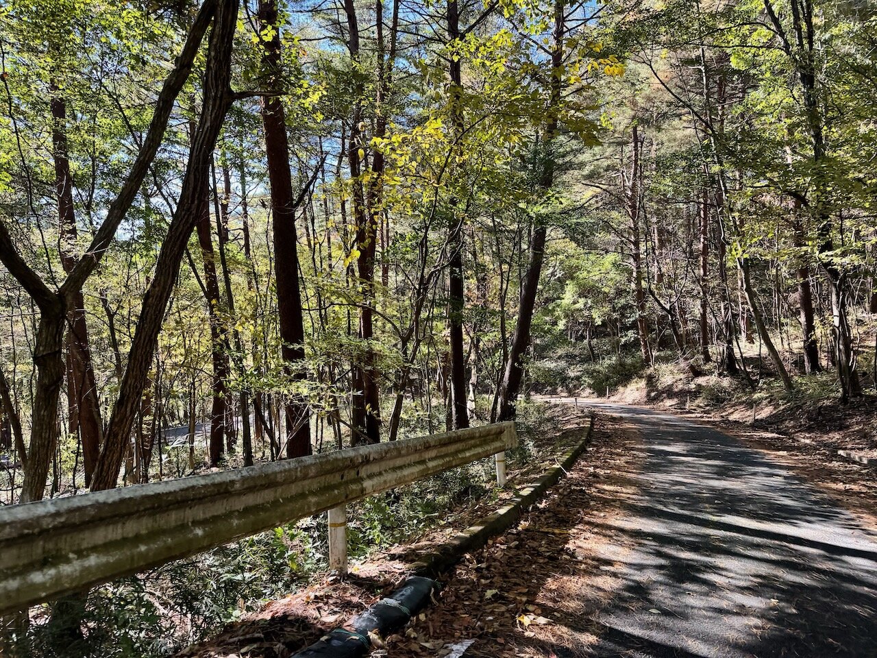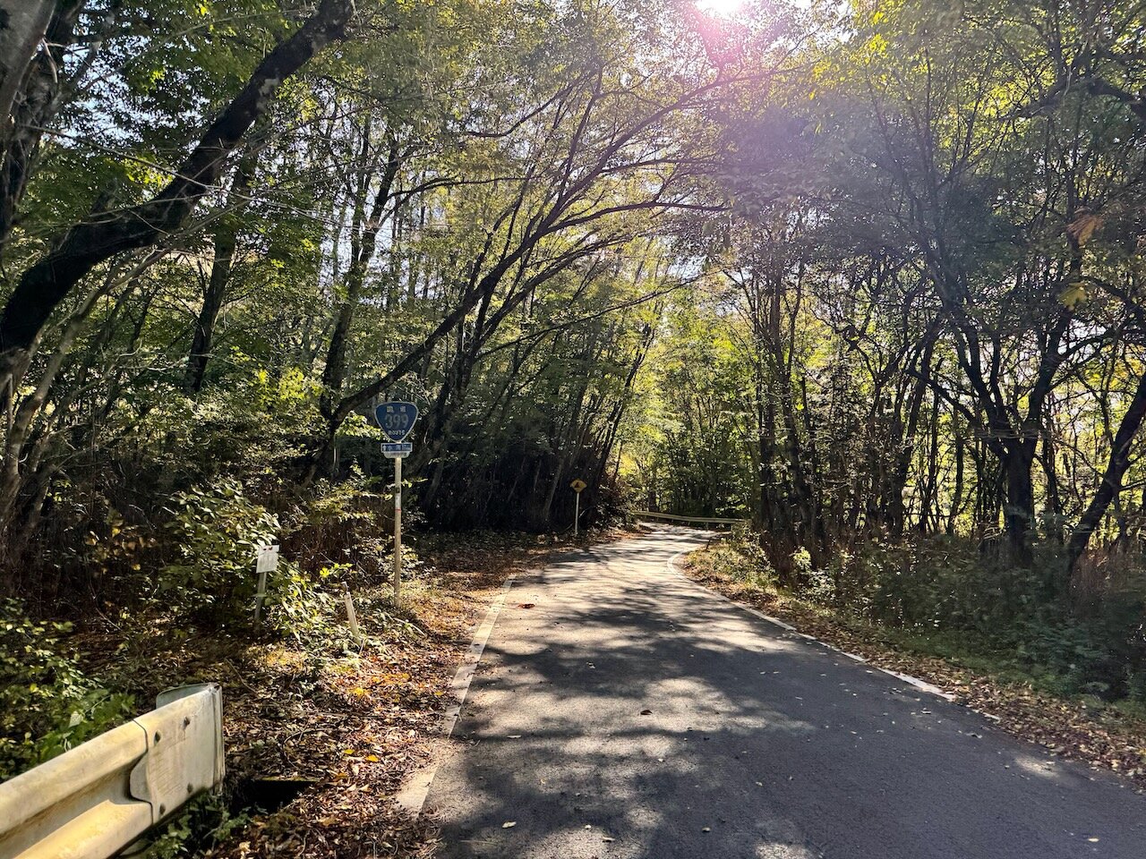 交通量が少ないことを疑わせる落ち葉の積もり方ですが、側溝の掃除などはいきとどいて、整備が行われているのは見てとれます。