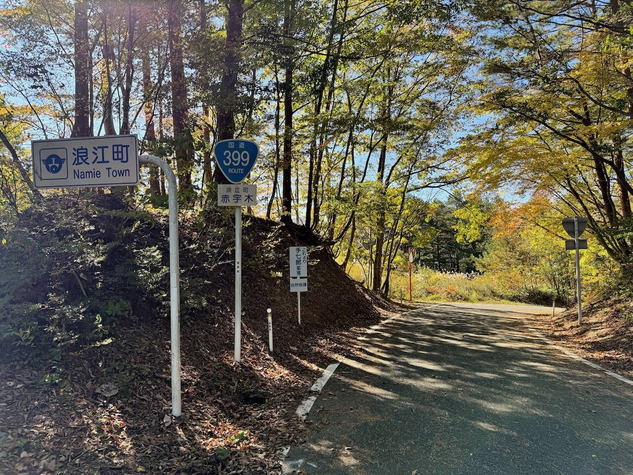 直進性の弱い国道399号は、たびたびクランク上に県道や他の国道に遮られつつ進みます。