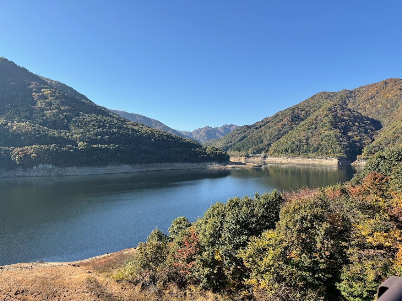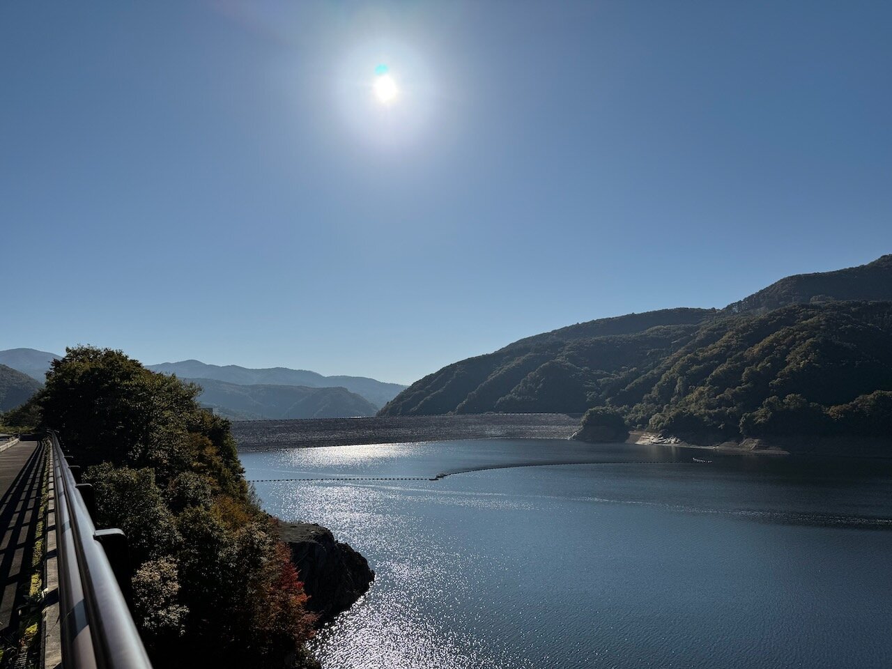 ロックフィルダムなので、自然に調和した堤体が美しいですね。