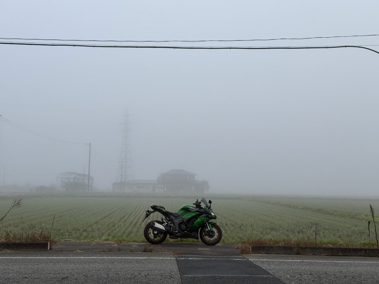下道でも霧が濃くなり薄くなり、ヘルメットのシールドを拭いながらの走行。