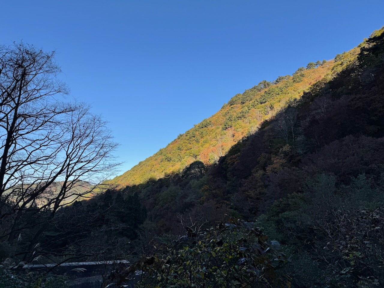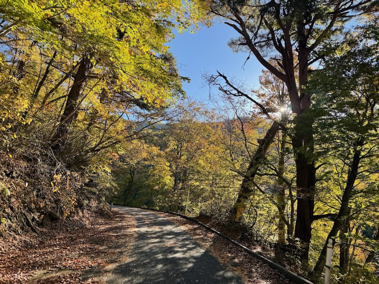 すっかり秋模様な低い太陽と青く済んだ空の中、込み入った山道を地道にのぼっていきます。