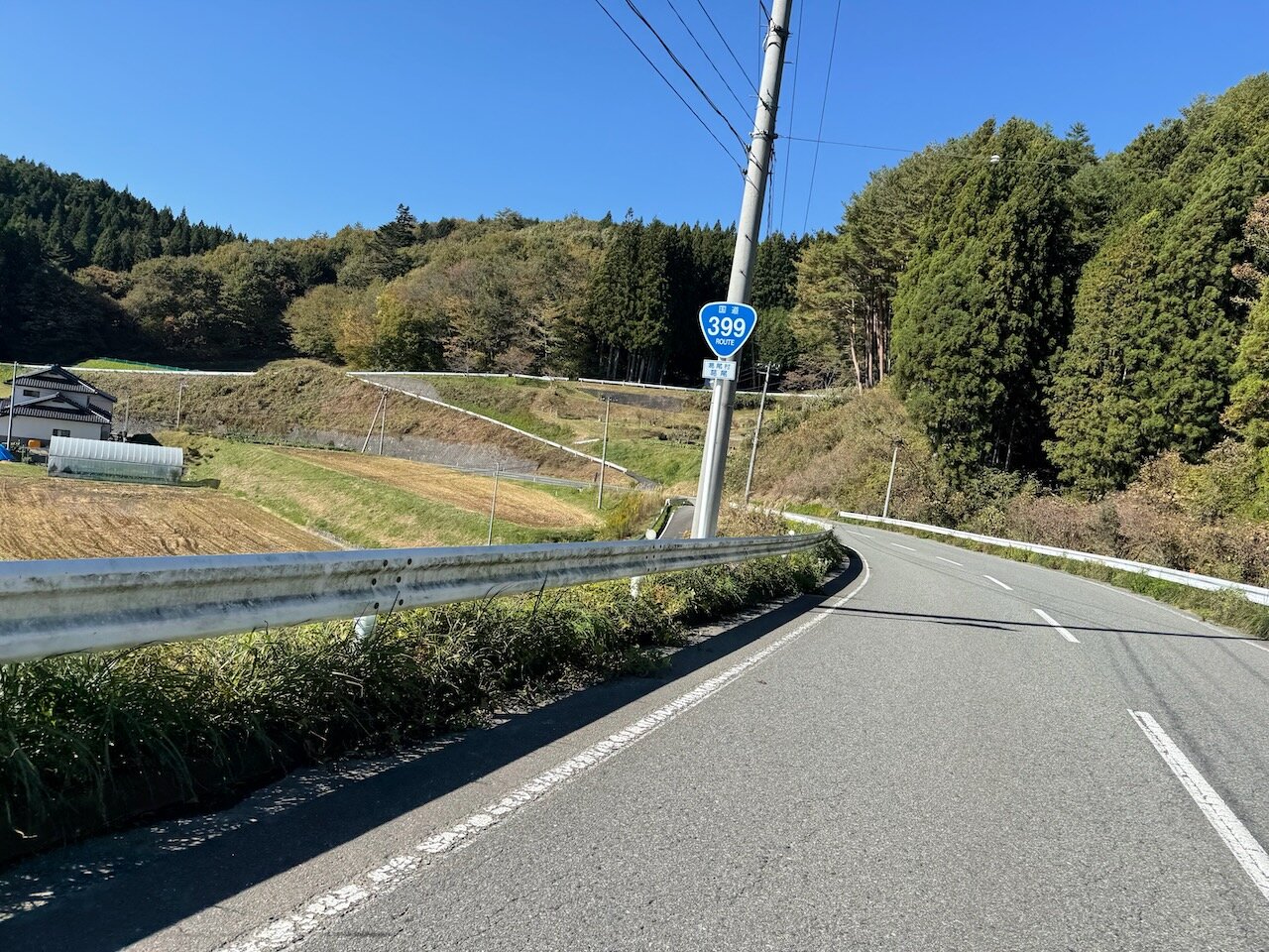 タイトルの通り、この日のツーリングの趣旨は国道399号の走破です。