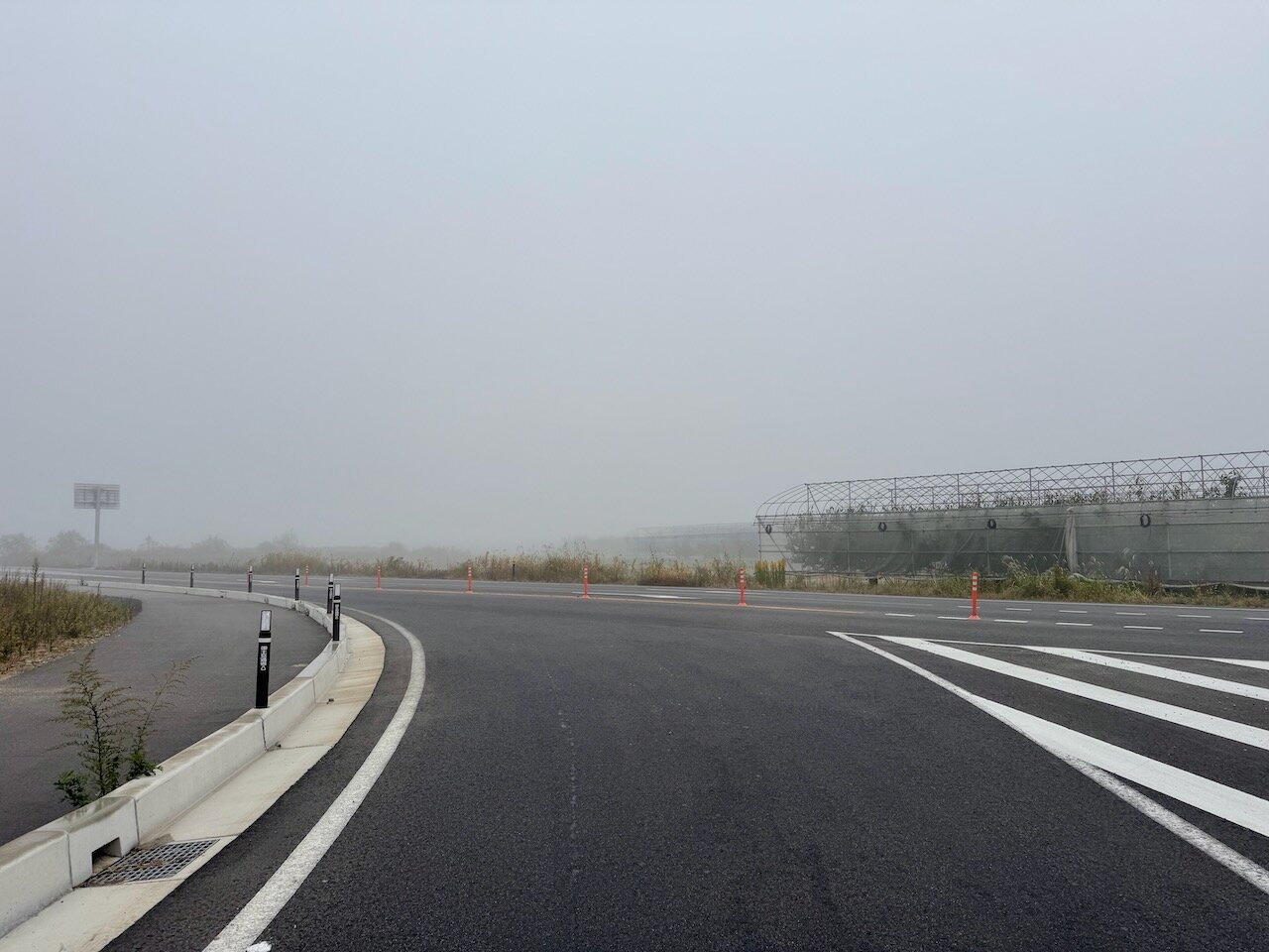 28℃の気温差に加えて、トンネルを抜けた先にはこれまで晴れていたのが嘘のように濃霧。