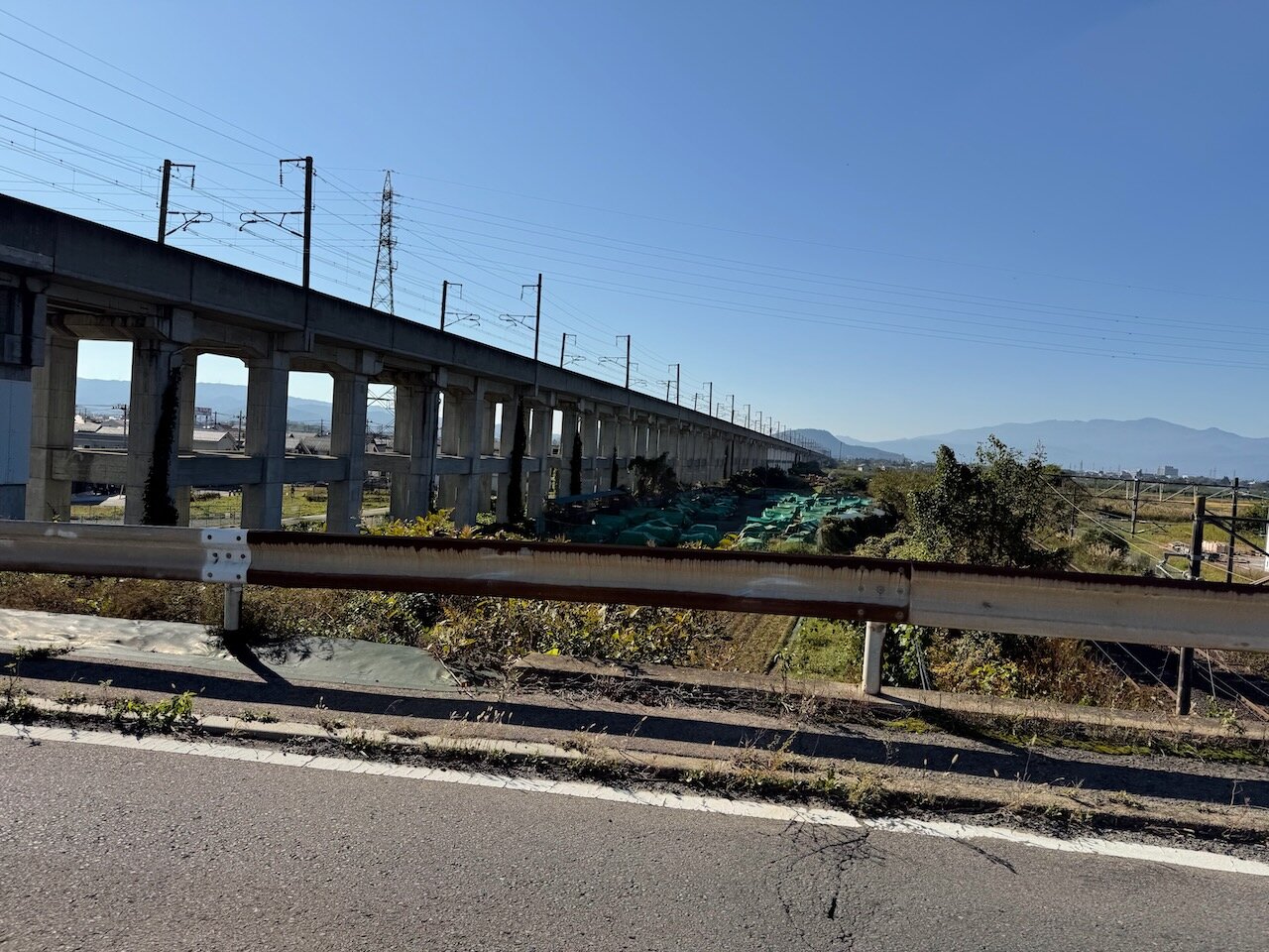 田んぼの中を抜ける新幹線の高層高架は見事そのもの。