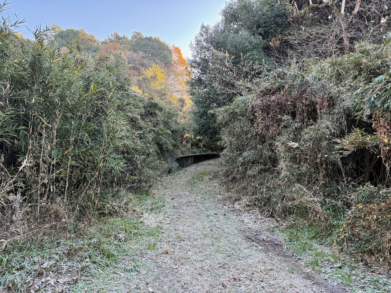 まだ微妙に残っている紅葉に白い氷がついて綺麗な景色です。