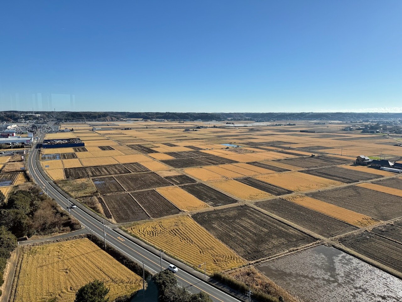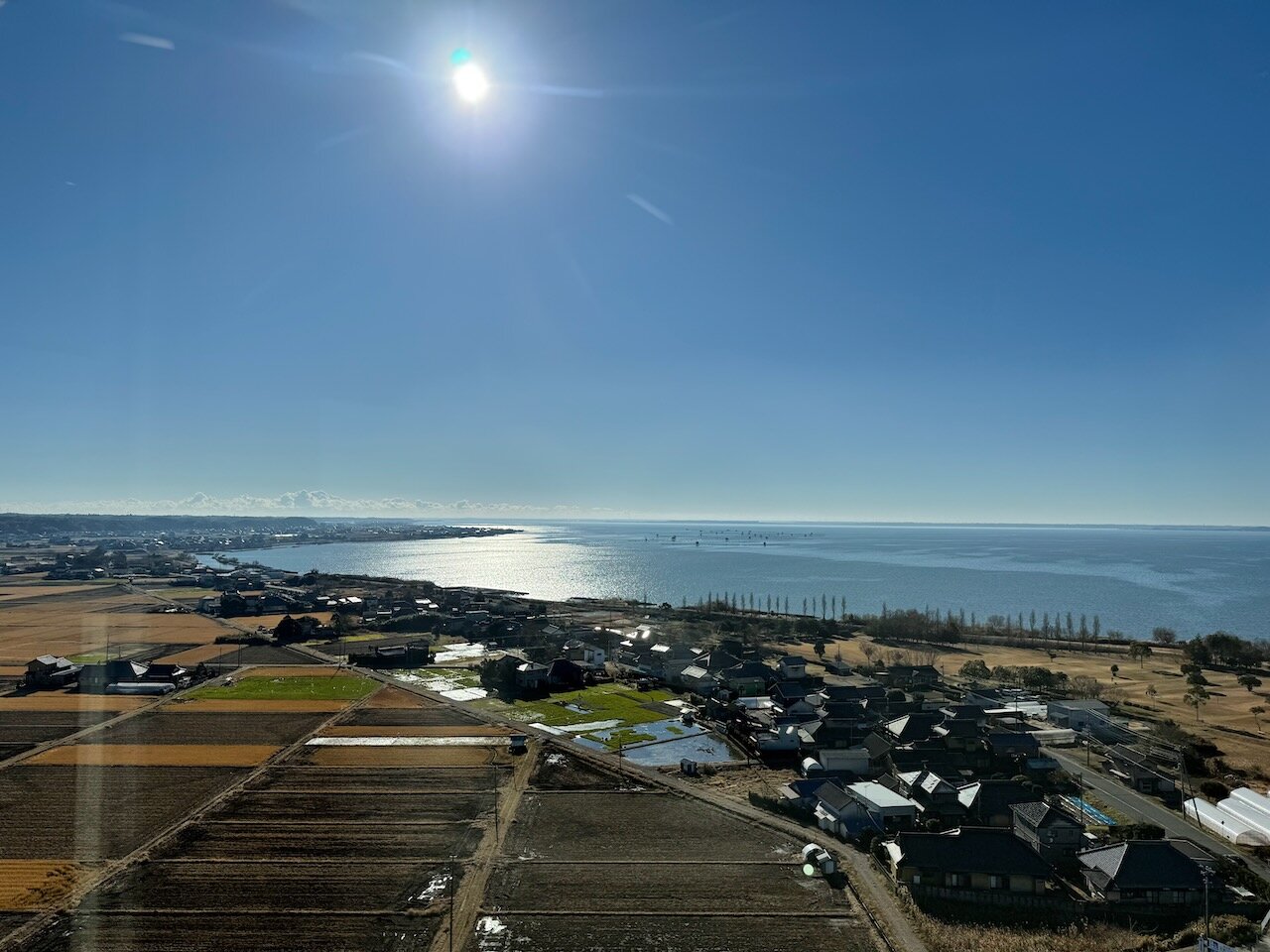 東側は霞ヶ浦の湖岸に広がる肥沃な田園地帯も見えます。