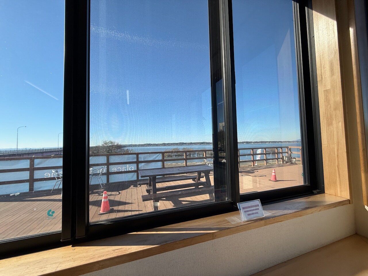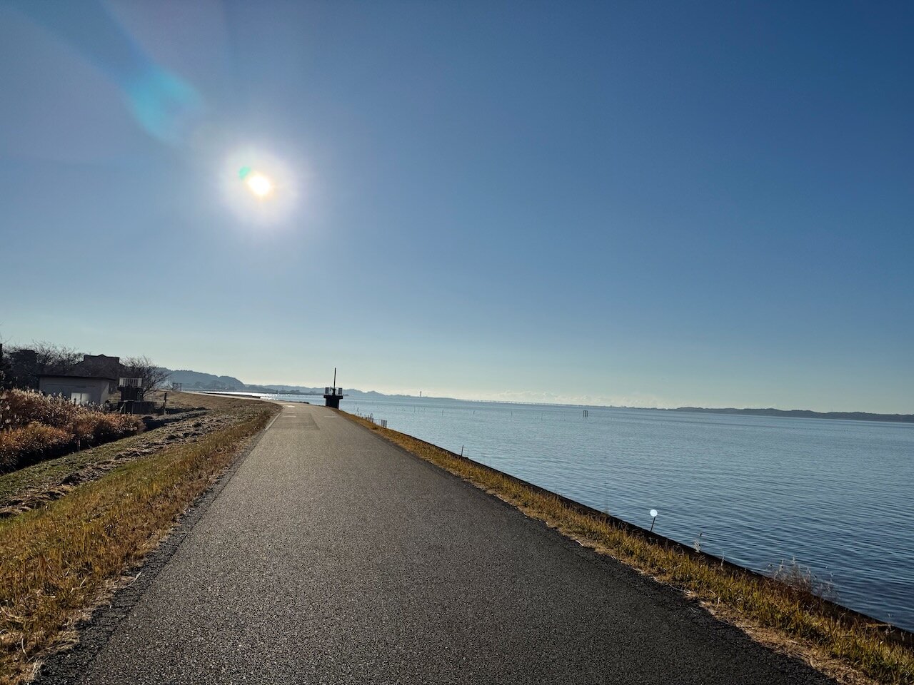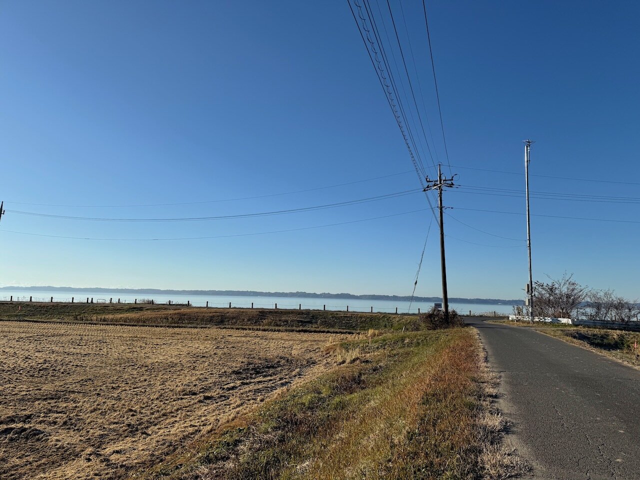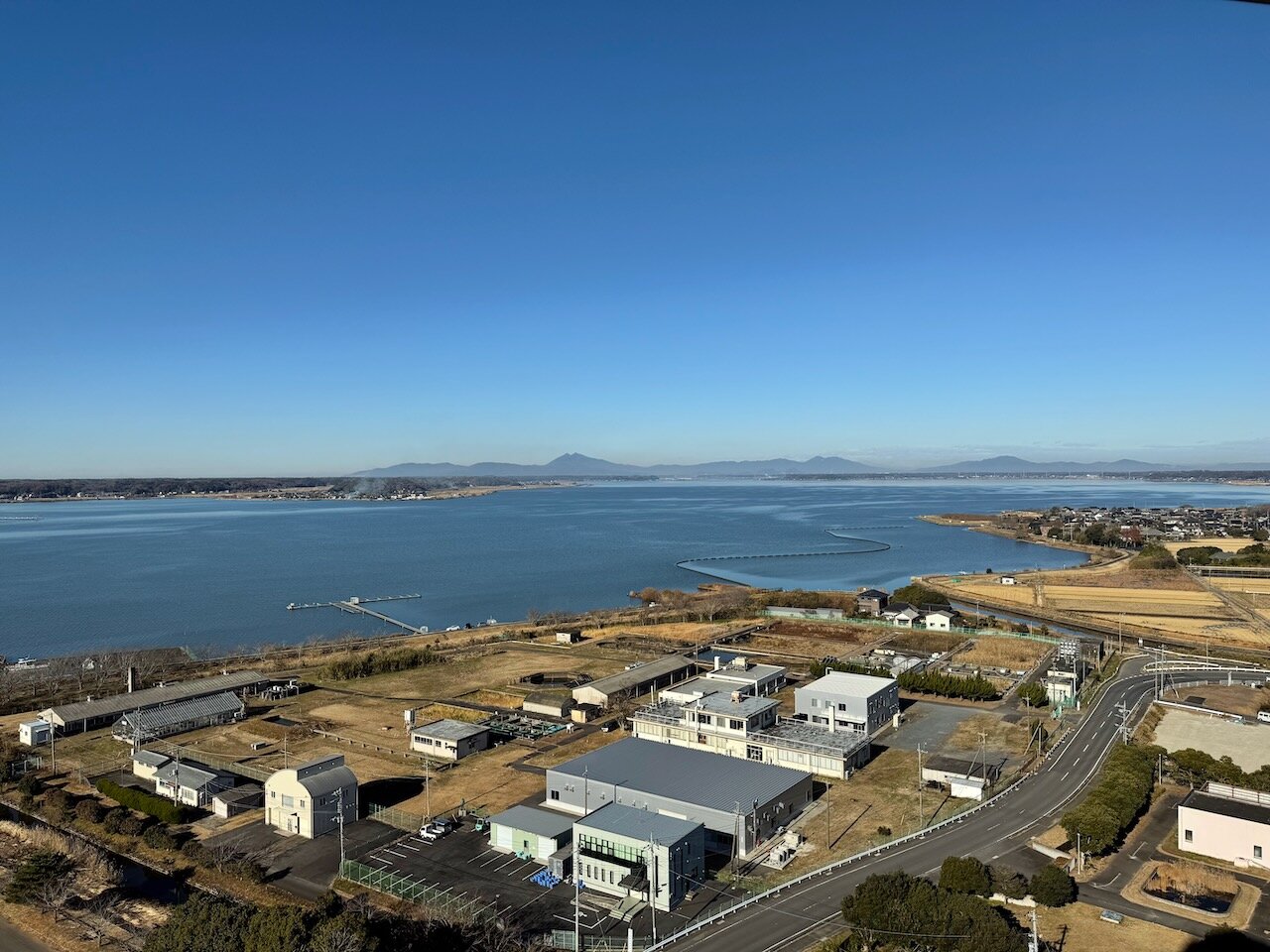 霞ヶ浦の西浦北側、いわゆる高浜入の入り口に位置するこの施設、南側を見ると巨大な霞ヶ浦を一望できます。