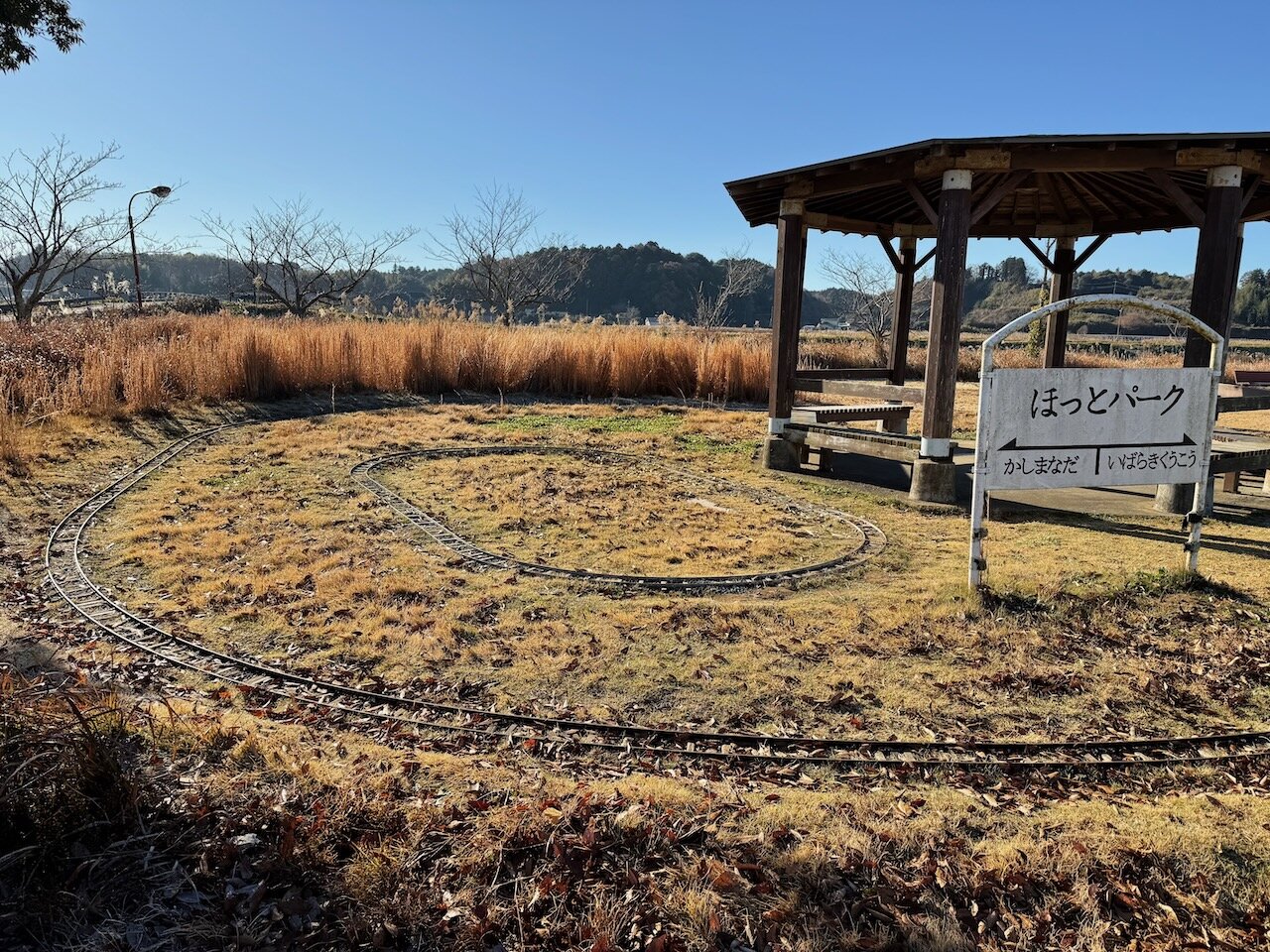 こちらは石岡南台駅跡をそのまま利用したもので、かなり濃く鉄道時代の面影が残ります。