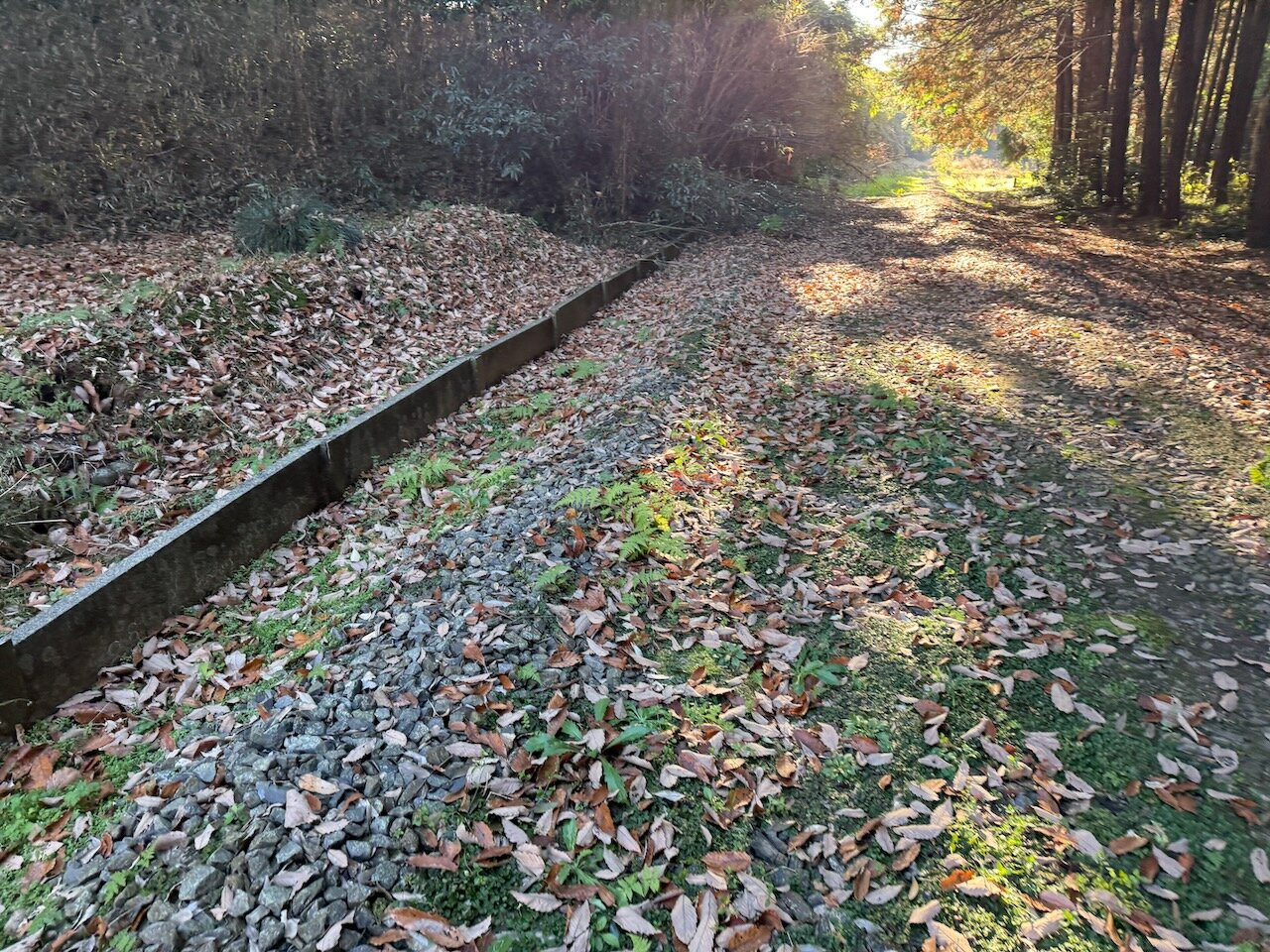 一部現役当時のバラストと思しき砕石も残っており、廃線跡っぽさはここが一番かもしれません。