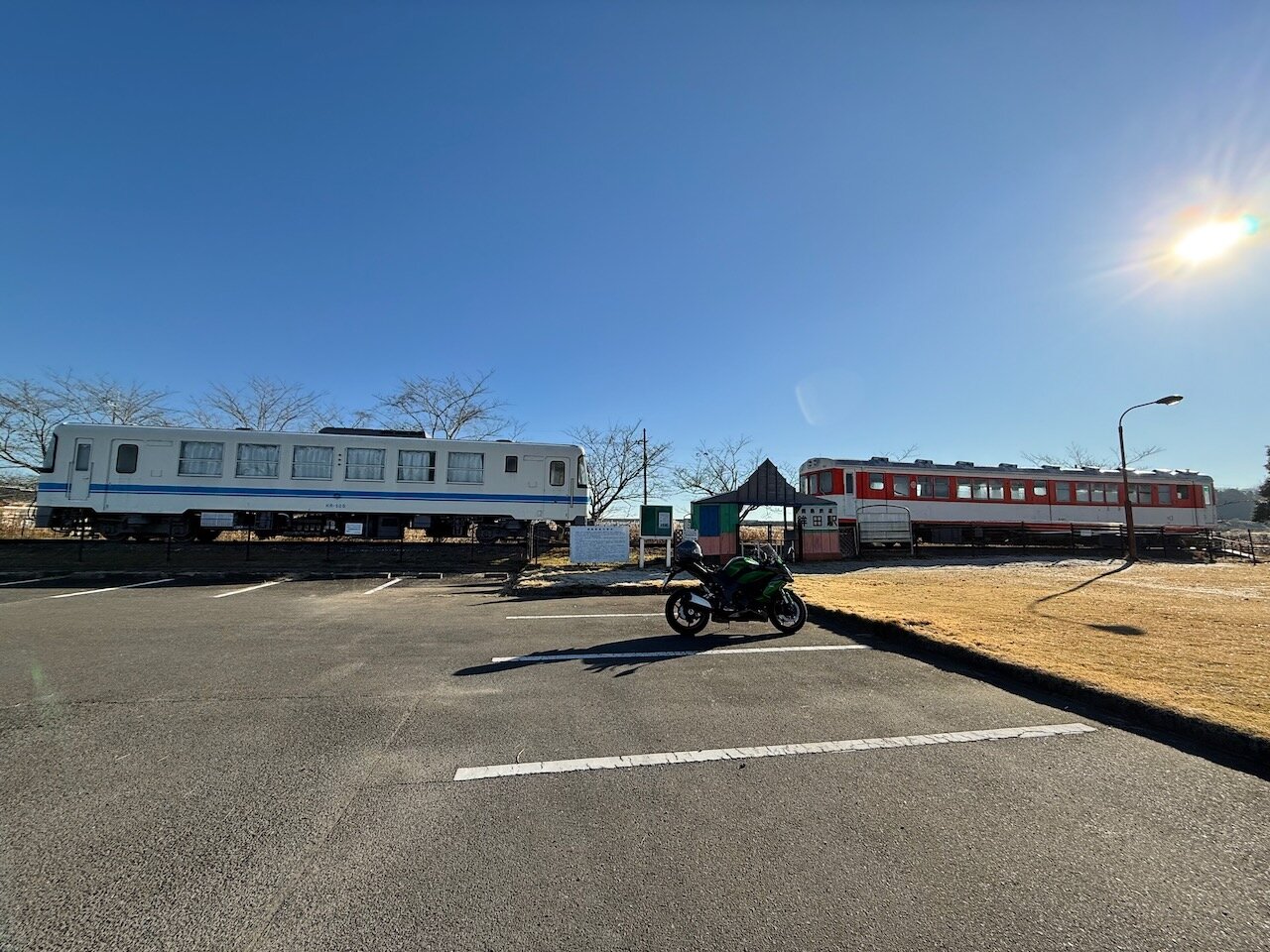 鉾田駅跡は現役のバスターミナルとして利用されているようなので、ずけずけと入っていくわけにもいかないですし、この車両たちを眺めて廃線めぐりはおしまいにしましょう。