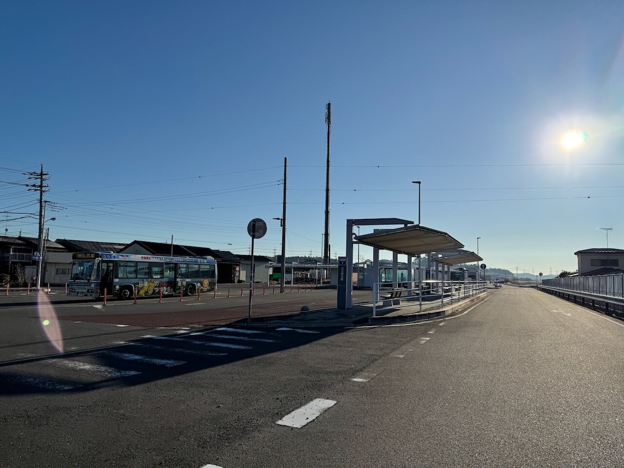 鉄道駅時代の跨線橋は立ち入り禁止となり用途廃止されてしまっていますが、停留所としても行き違い構造を維持しているため、向こう側へは道路を横断してアクセスできます。
