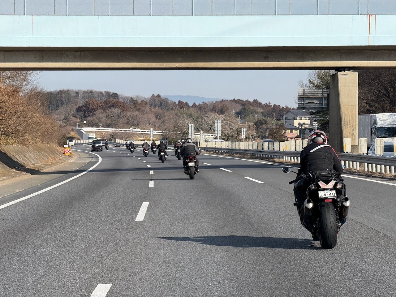 時間通り集まって出発、隊列走行で守谷・友部とつないで北上します。