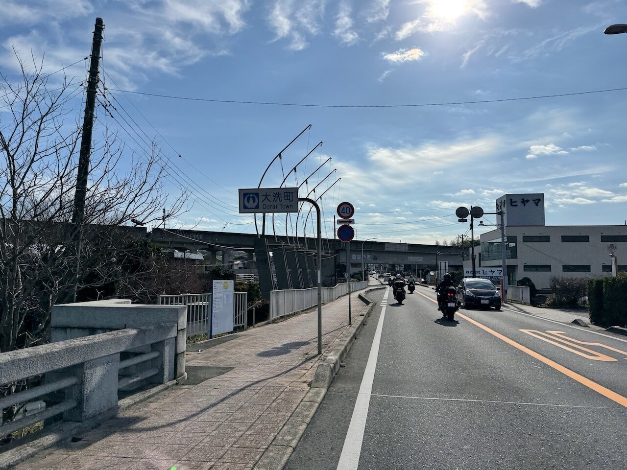 涸沼川をわたり、鹿島臨海鉄道の高架をくぐればすぐに大洗の中心部です。