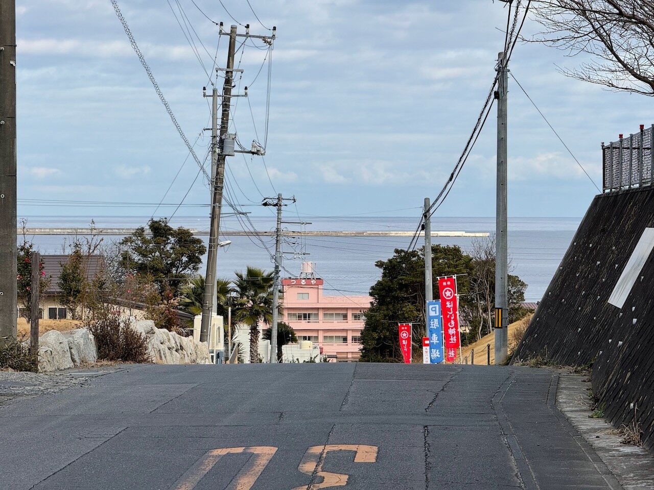 市街地を迂回するようにして県道2号を走り、さくら坂通りと名のついた道を太平洋に向かって降ります。