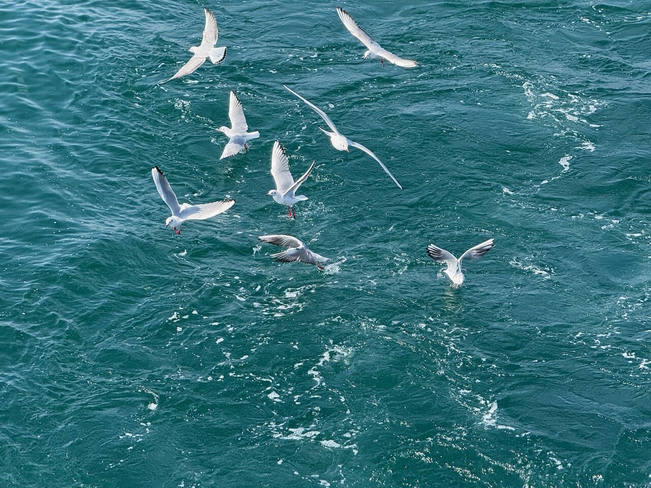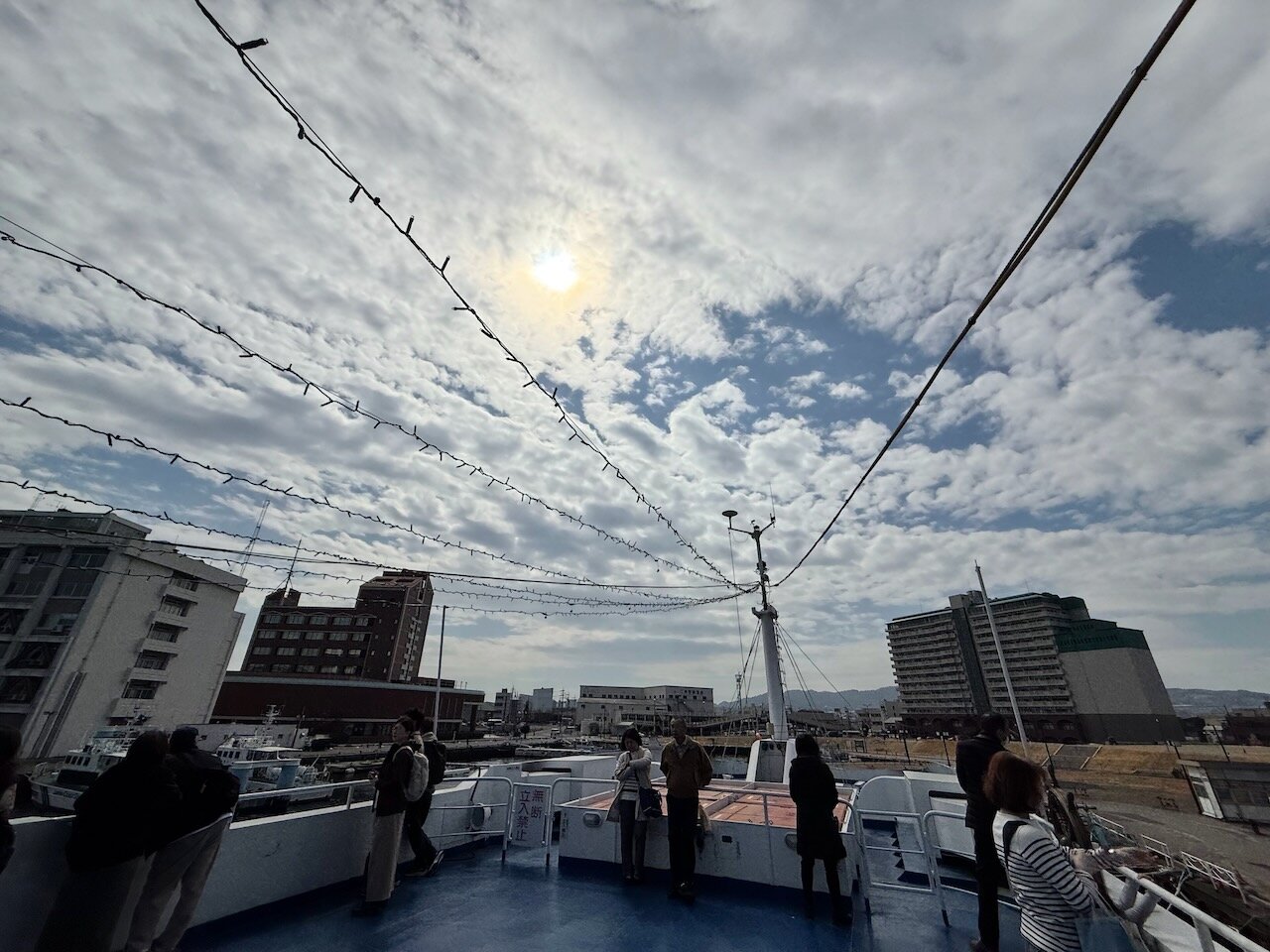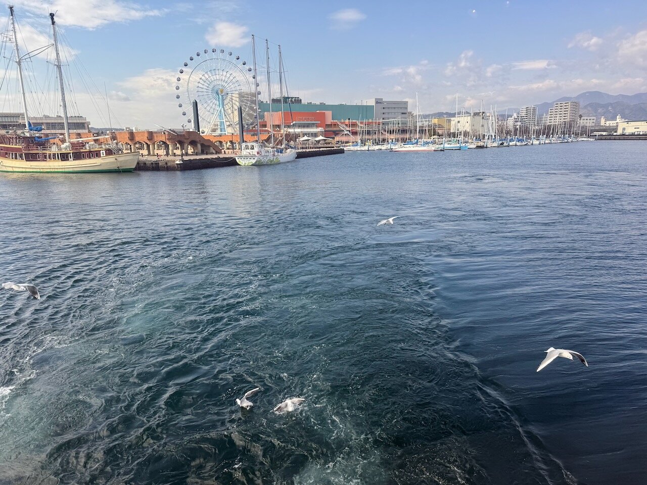 誰かが購入した餌に集るカモメを引き連れて、船は進みます。
