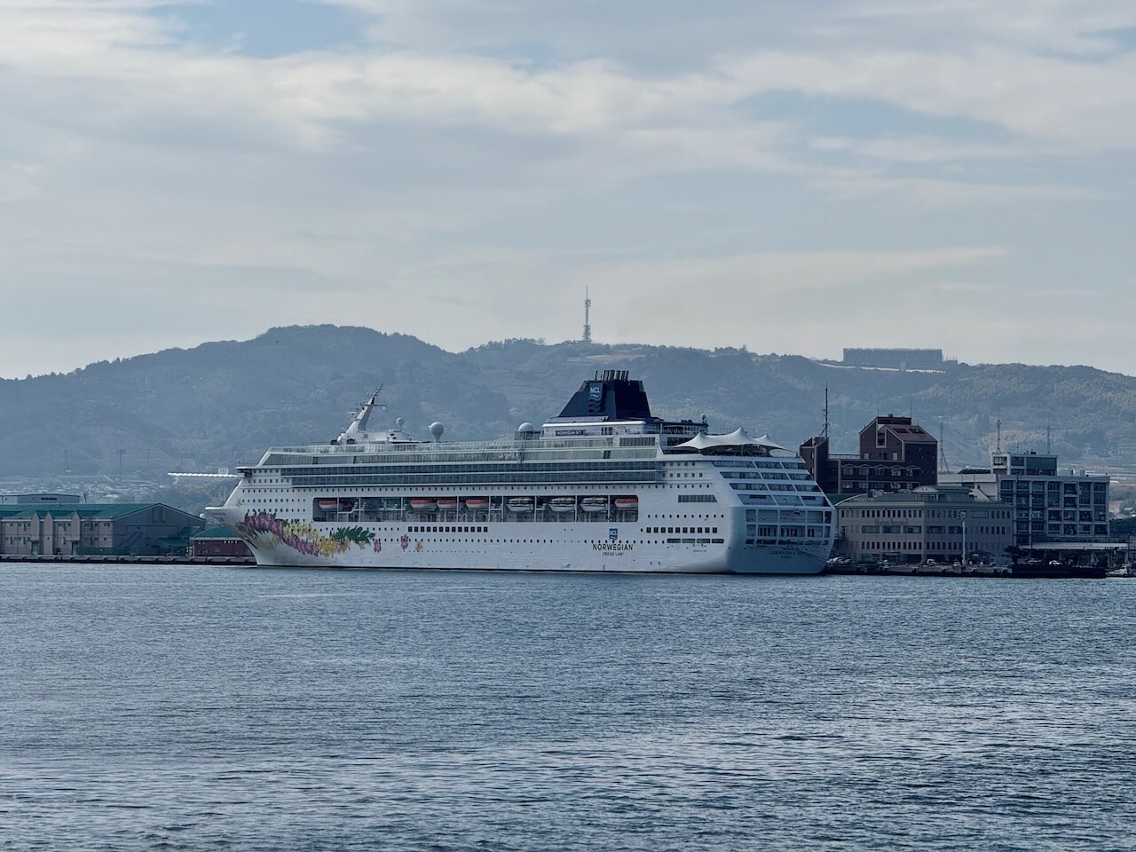 この日いたのはNORWEGIAN SKYで、全長258m、総トン数77,000tほど。