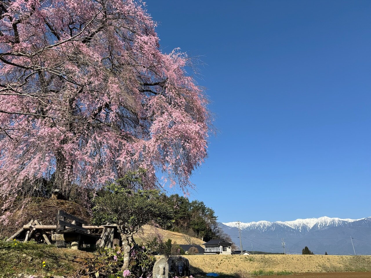 桜の花も山の稜線も、見上げることが多いですが、水平な目線の先にこういった景色があるのは新鮮。