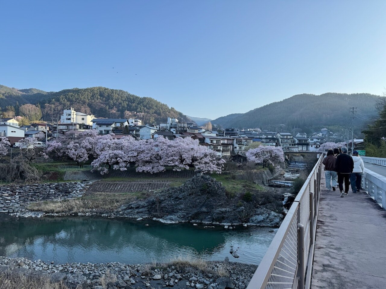 川沿いの平地に田畑があり、両側が山という特性上、斜面を利用して植えられた桜は平地のそれより大きく立派に見えます。