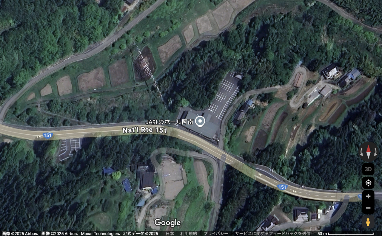 右岸では国道151号に入り、引き続き南進。