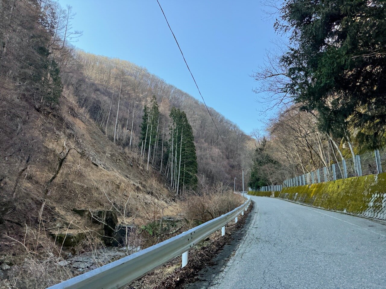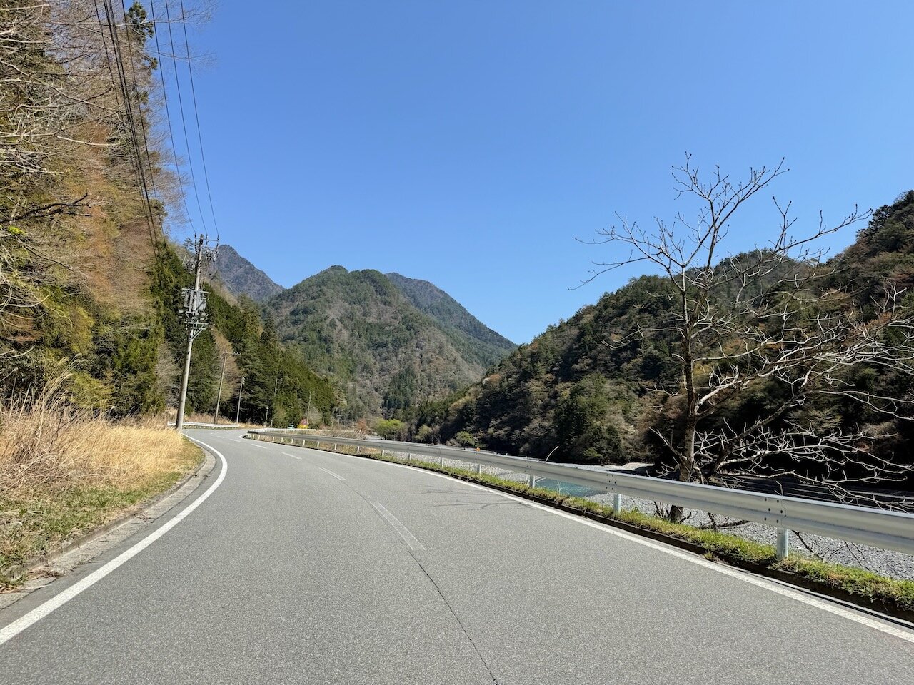 給油とホットコーヒーブレイクを済ませたら、峠へ向かって国道152号を登ります。
