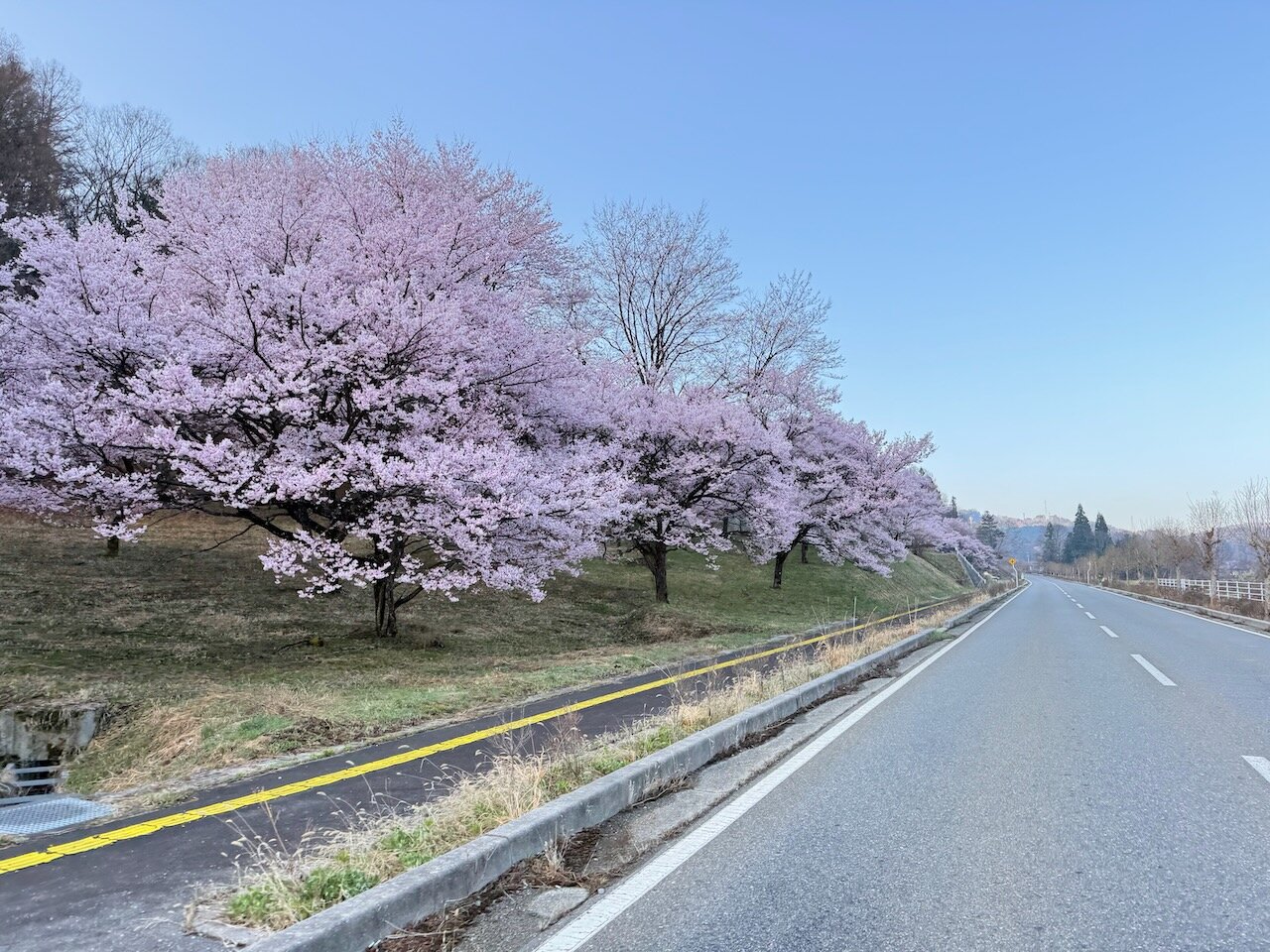 沿道にはここの他にも桜が見事な斜面がちらほらと。