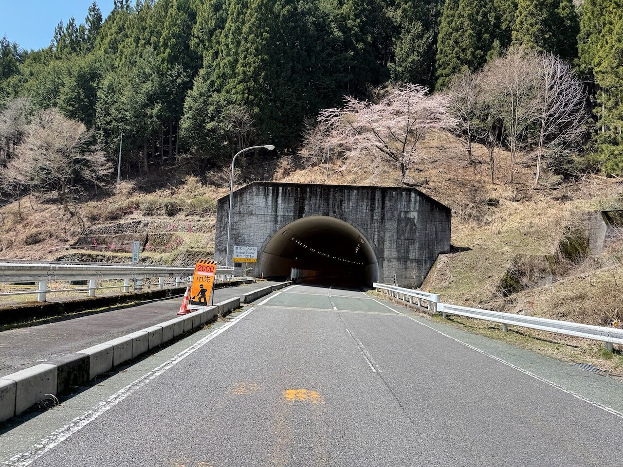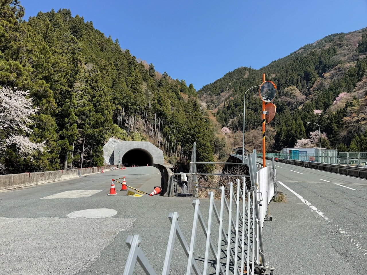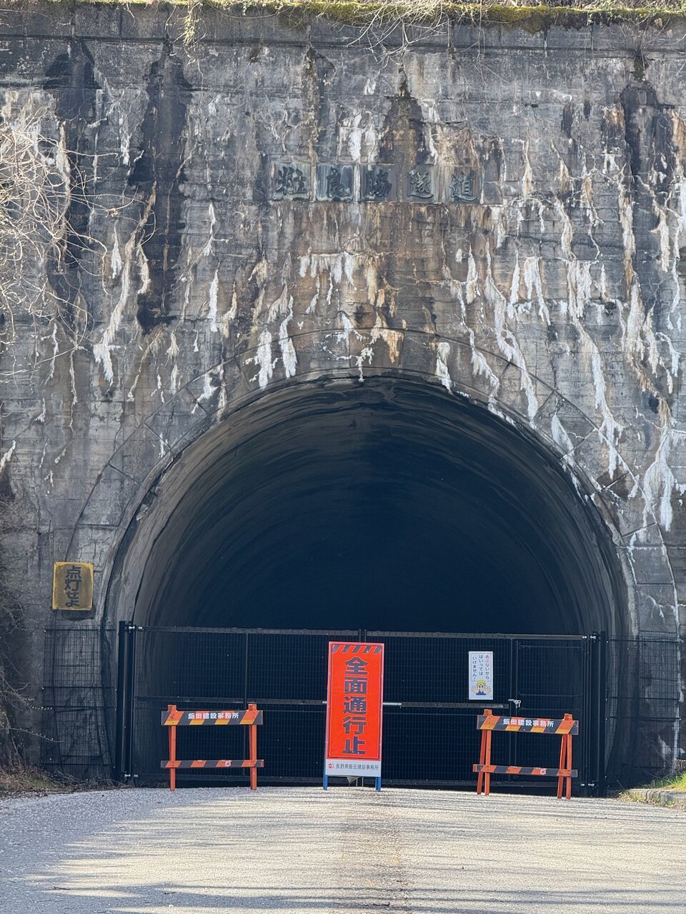 旧トンネルは早速通行止めになっていました。