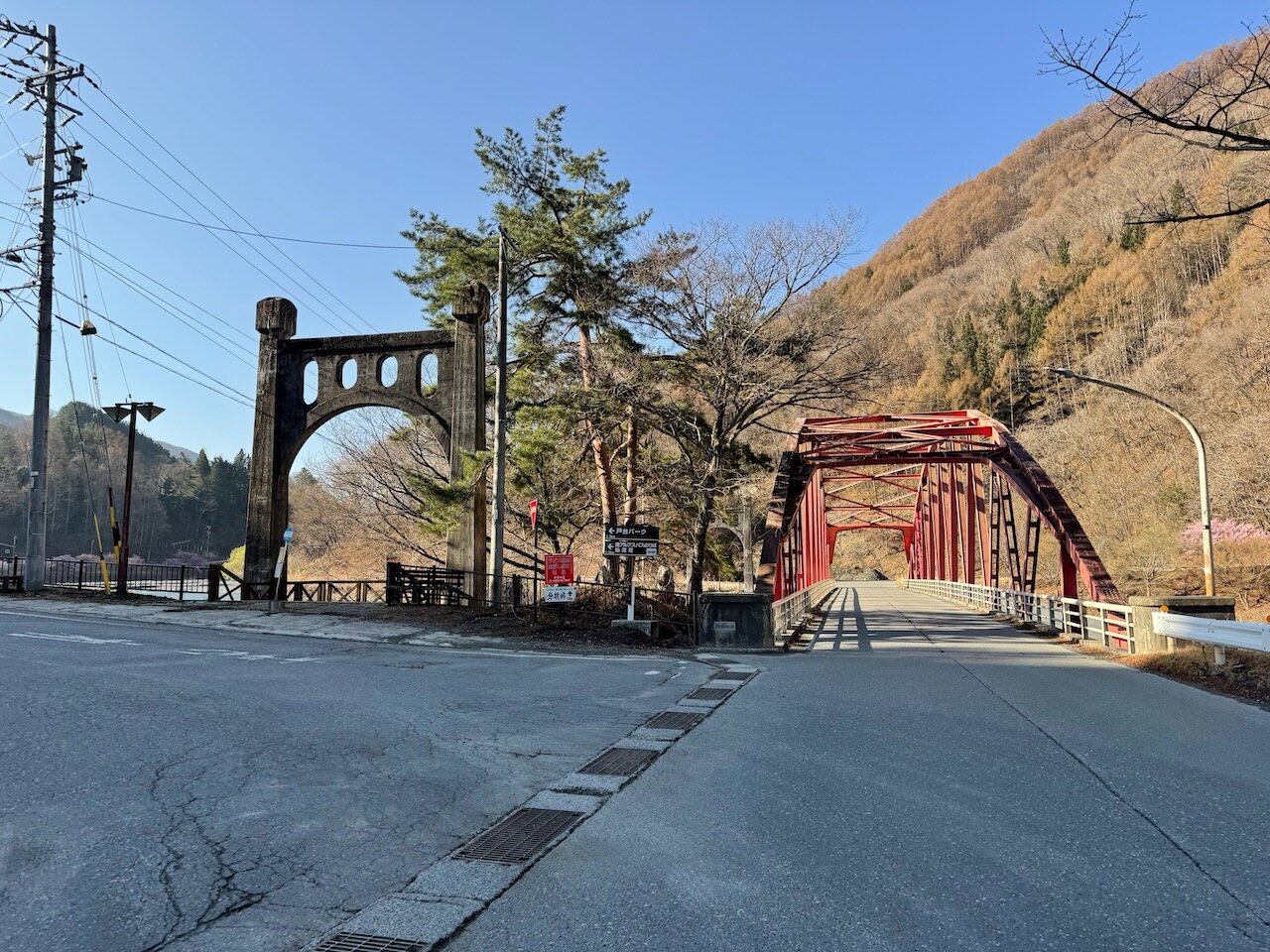 いつも目につく旧吊橋の塔が残る三峰川橋をわたり、分杭峠方面へ。