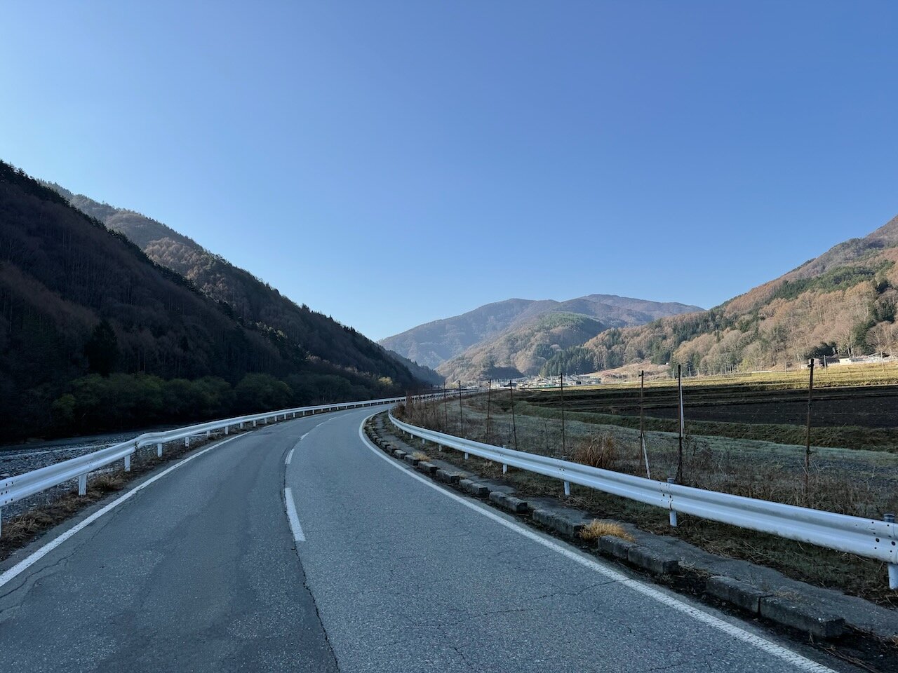 盆地をつらぬく主要道路、国道153号にそのまま回るのも好きですが、今日は県道18号などを使って高巻きに走ります。