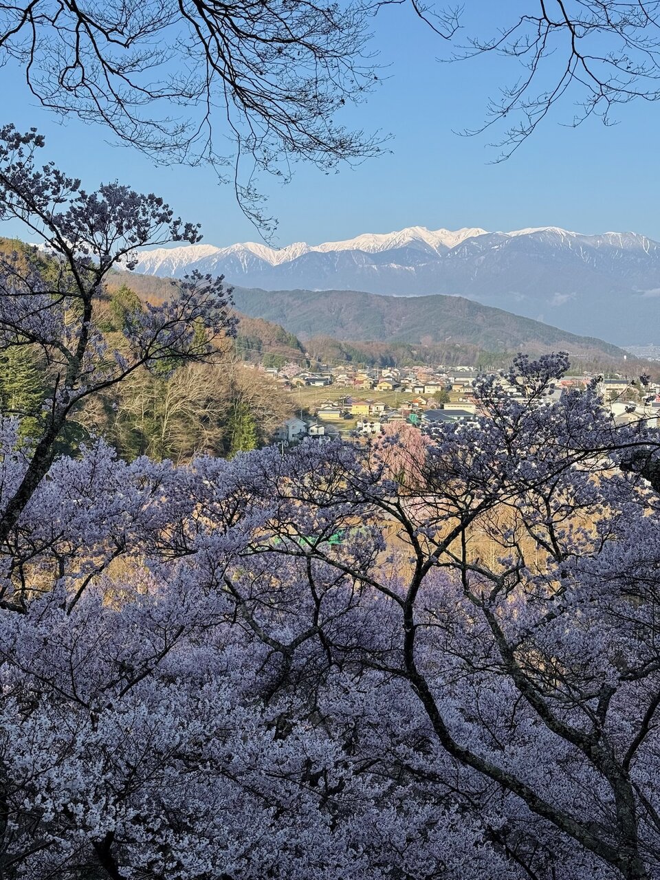 登るに従い、どんどん木曽山脈と桜が重なっていきます。