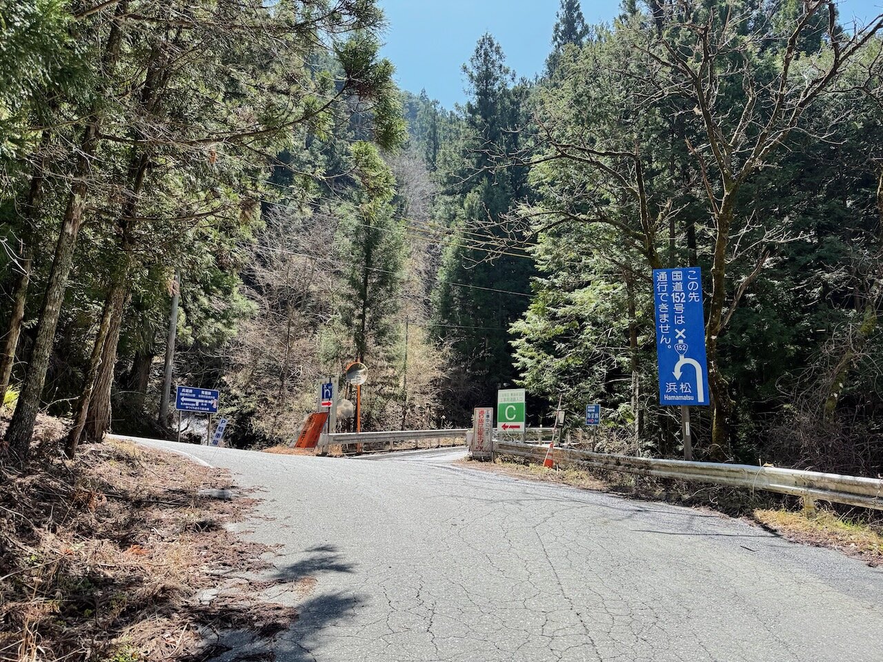 本来は国道152号と迂回路を全線走って浜松までいきたいのですが、分杭峠や地蔵峠は災害で通行止めが続いています。
