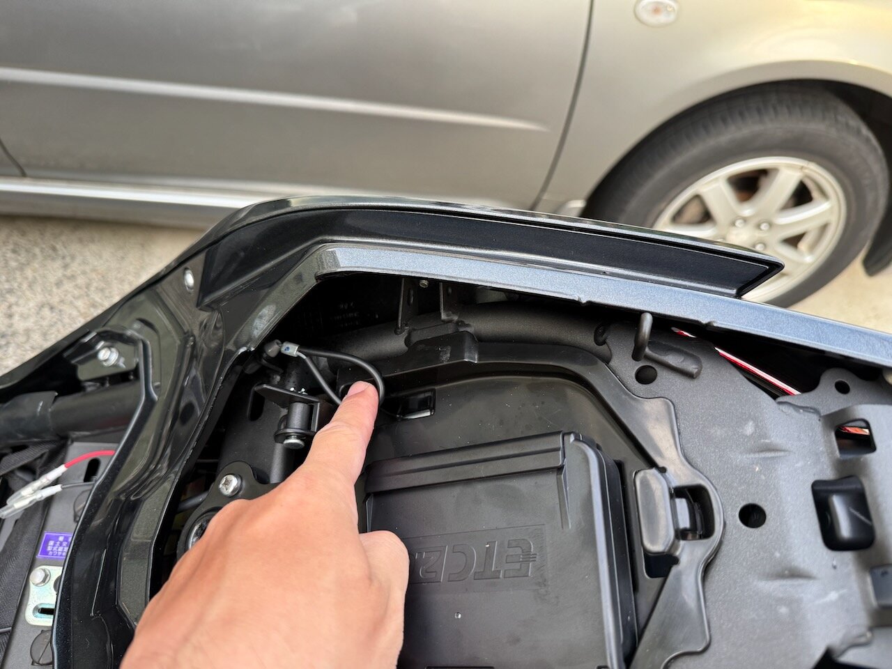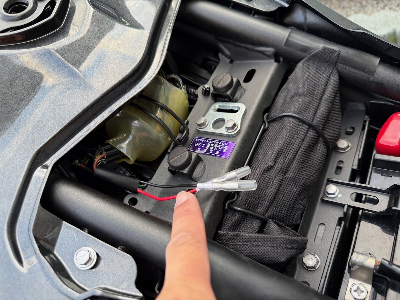 配線はタンク下のサイドカバーを外して埋め込みます。