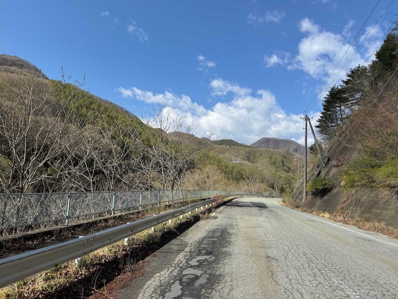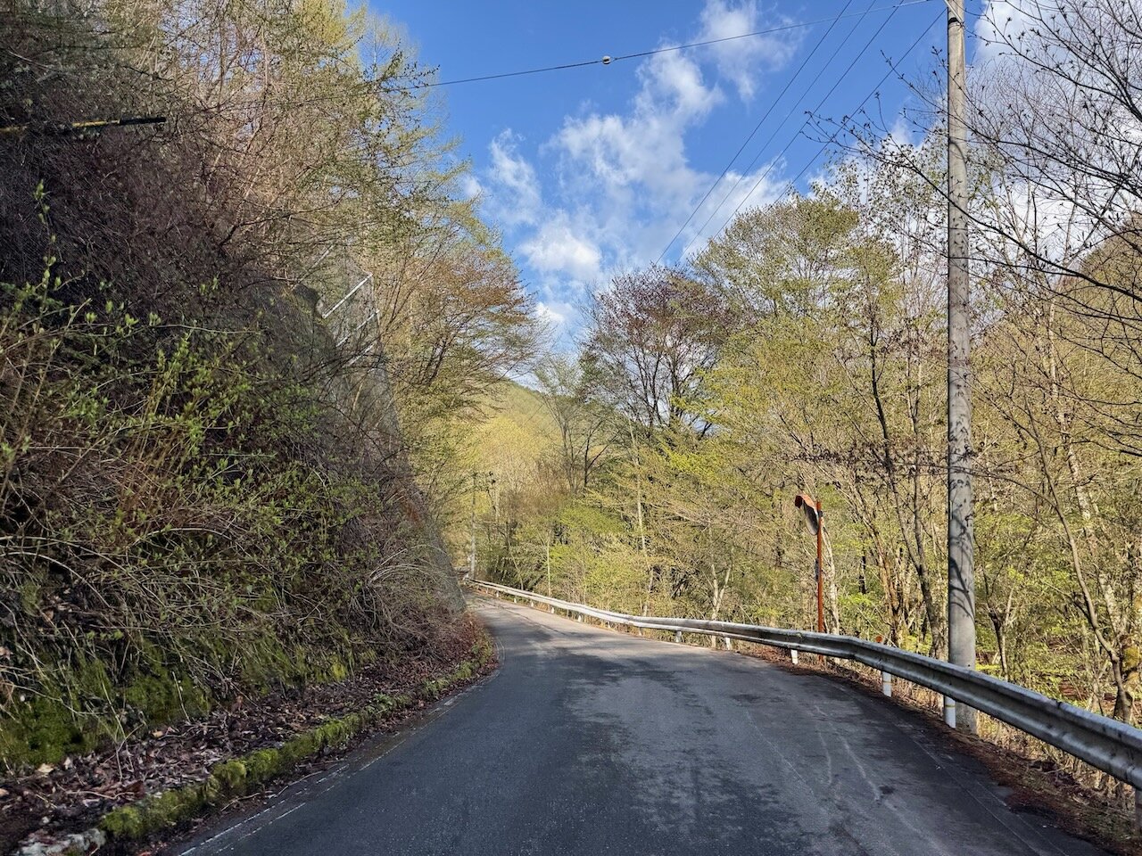 さっきの県道とあまり変わらない、クネクネ道を進みます。