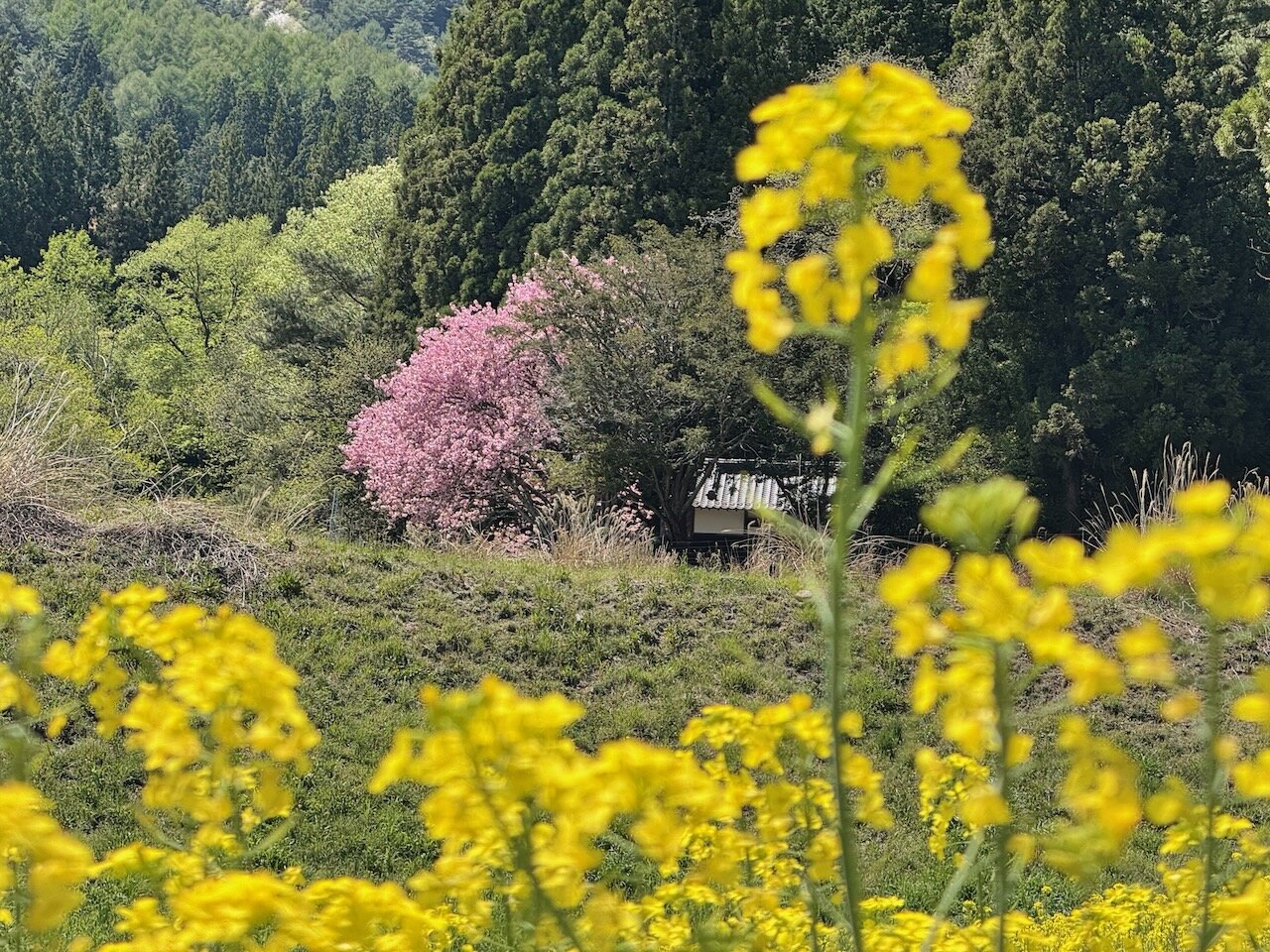 この辺り、標高は200mもないですが、内陸山間部だからか、まだ桜が残っていますね。
