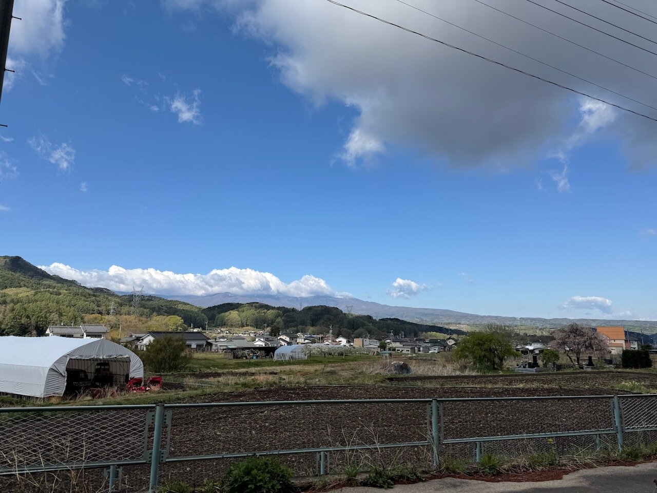 盆地は雲ひとつない快晴ですが、北に見える山の上は雲がたなびいています。