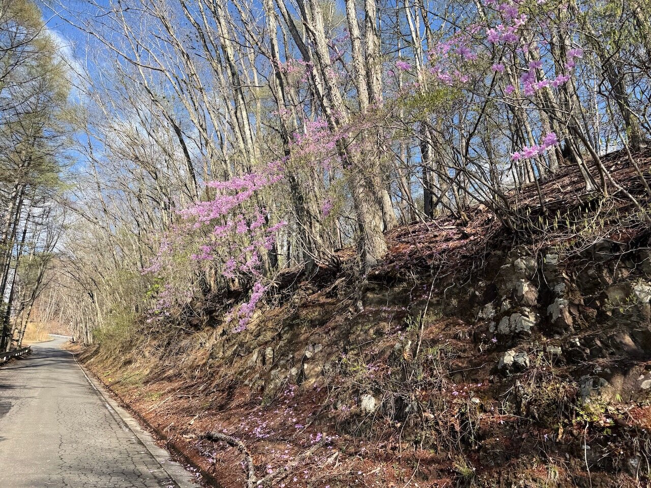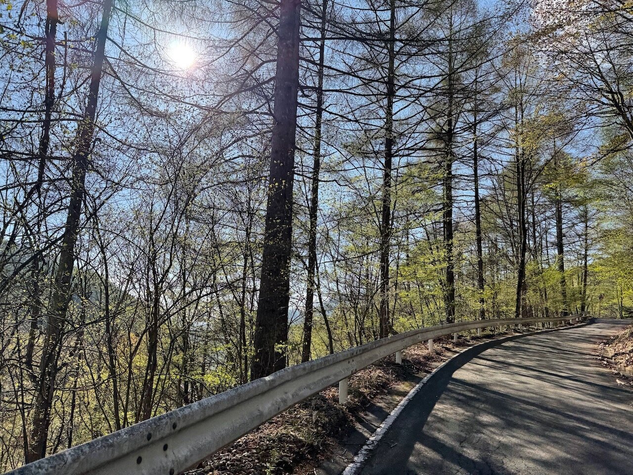 標高もあがってきて、スカスカになってしまった冬っぽい木々の隙間から太陽が明るく差します。