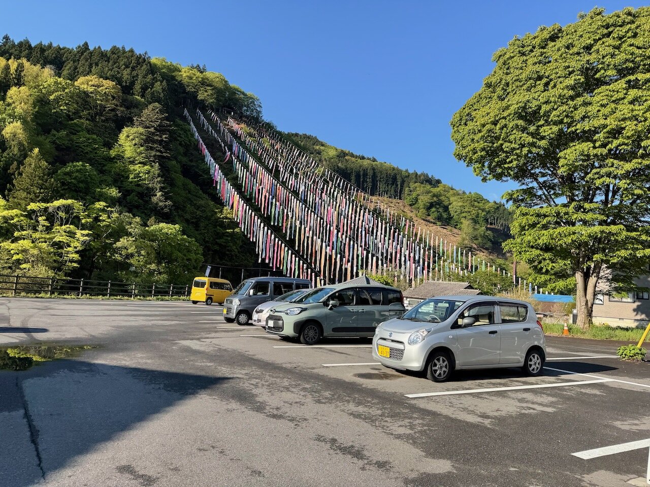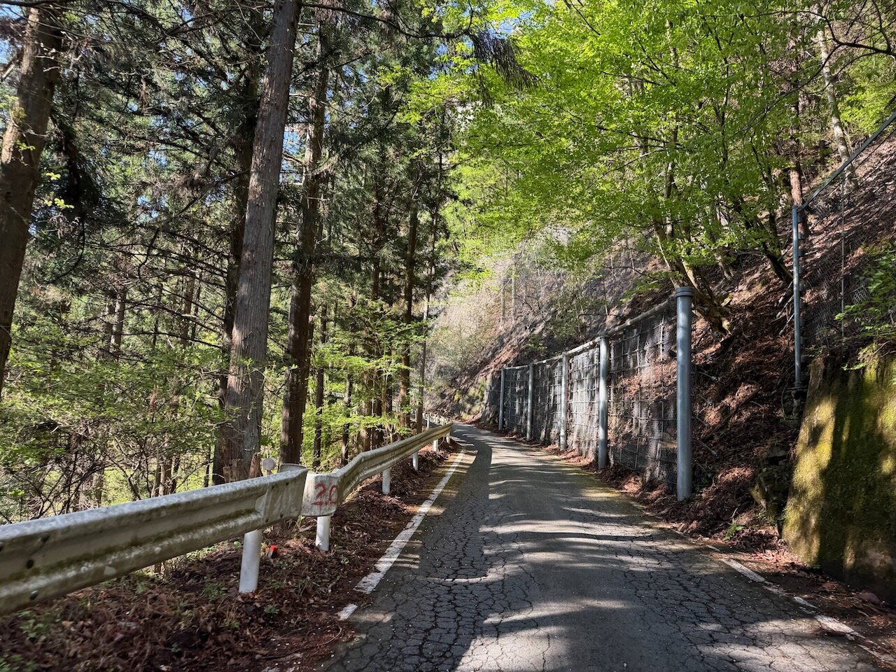 出発が遅いことがここでは幸いし、路面も山の斜面も、日陰とはいえもう十分に明るいです。