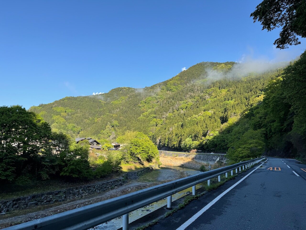 ダム湖を抜け、引き続き川沿いにくねくねと進みます。