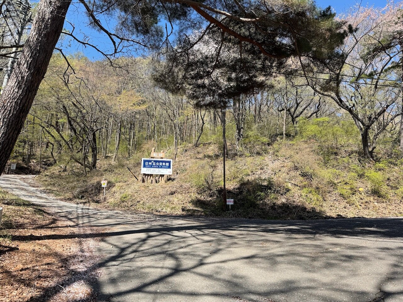 県道は信州昆虫資料館の手前で終わり。