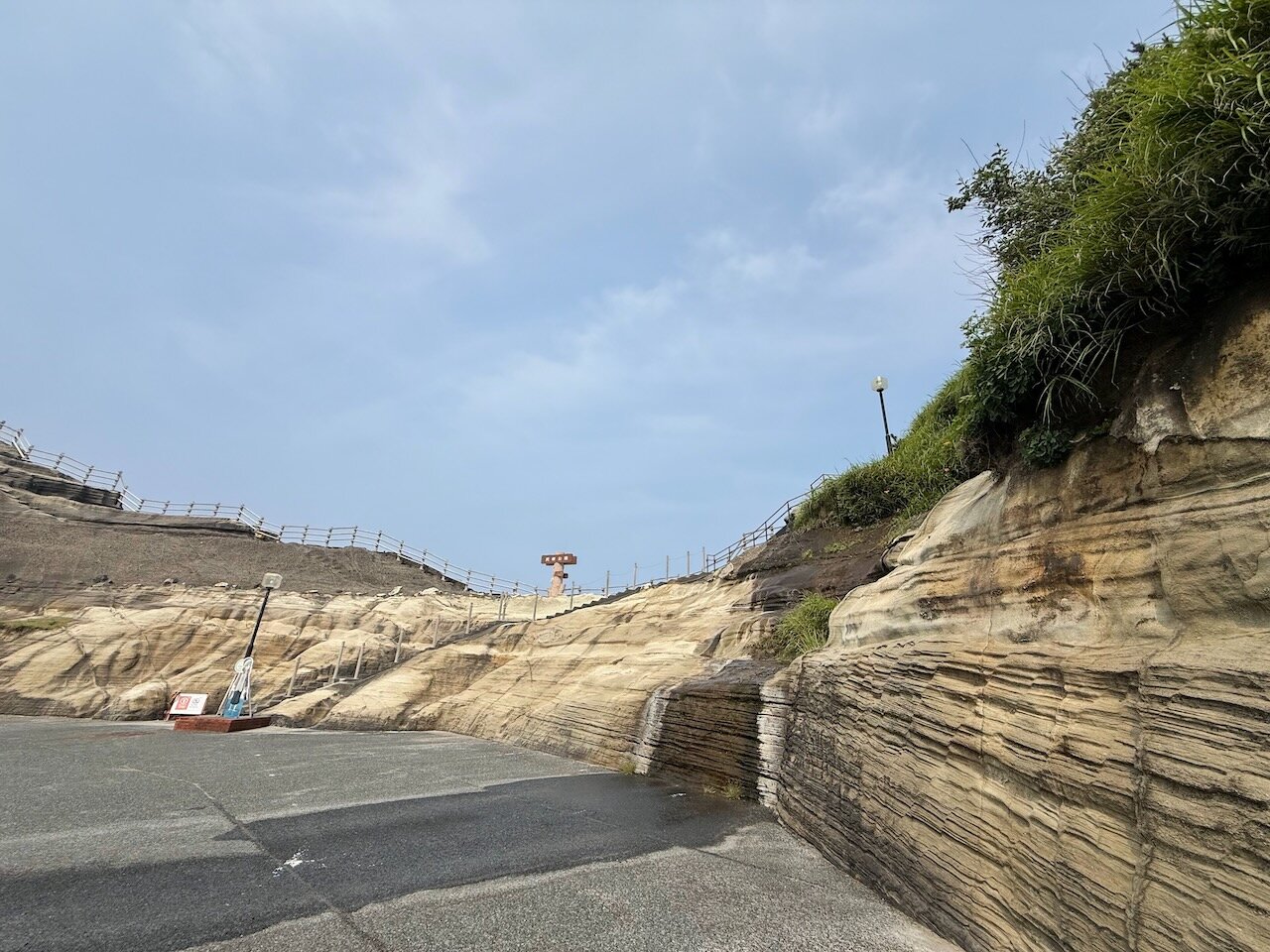やってきたのはこちら、伊豆急行線の線路に並行して伸びる歩道橋です。