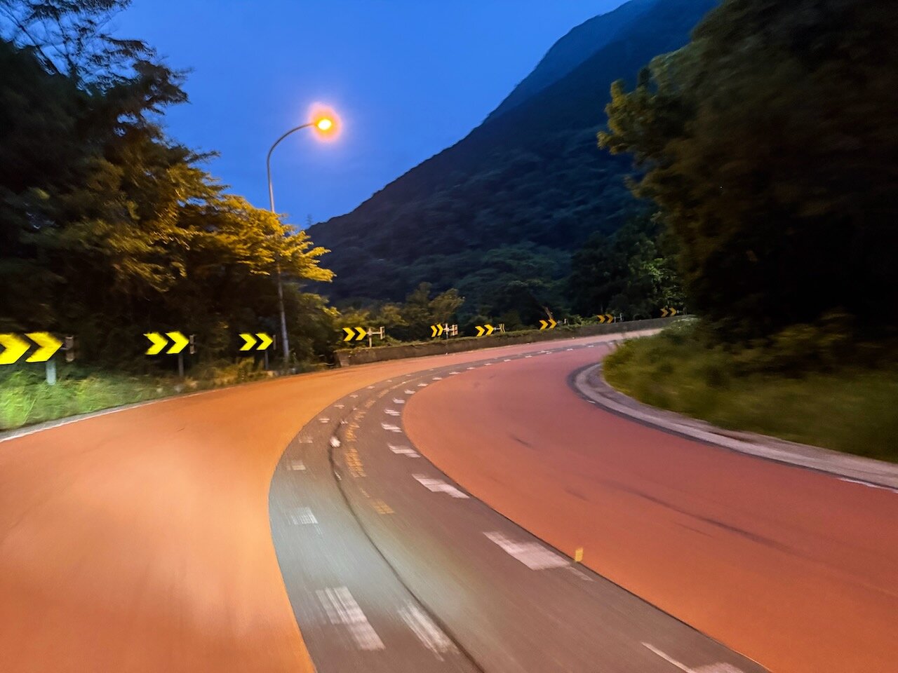 箱根新道は天下の国道1号線バイパスでもあるので、街灯もばっちり整備されていて夜明け前でも余裕です。