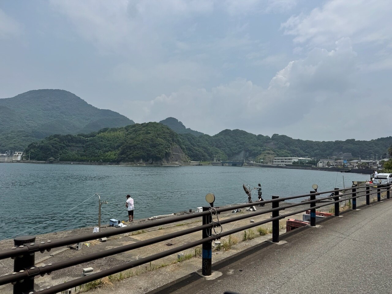 生憎釣りは経験も道具も持ち合わせていないので、釣り人の皆様を眺めつつバイクと海の写真を一枚。
