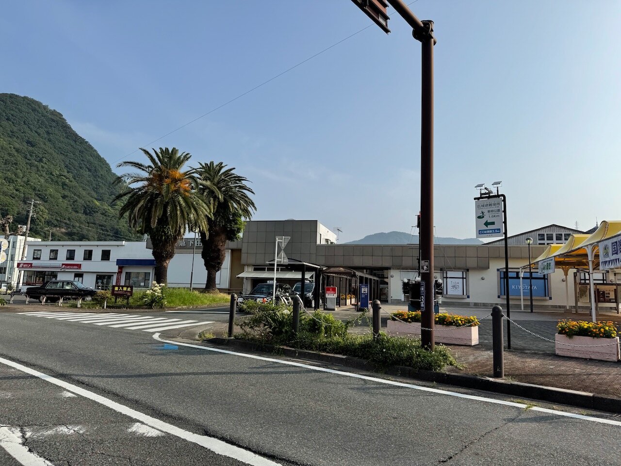 出発前に朝食は摂ってきたのですが、2:30から数えてすでに6時間、小腹がすいたので松崎の街中で一旦コンビニ休憩。