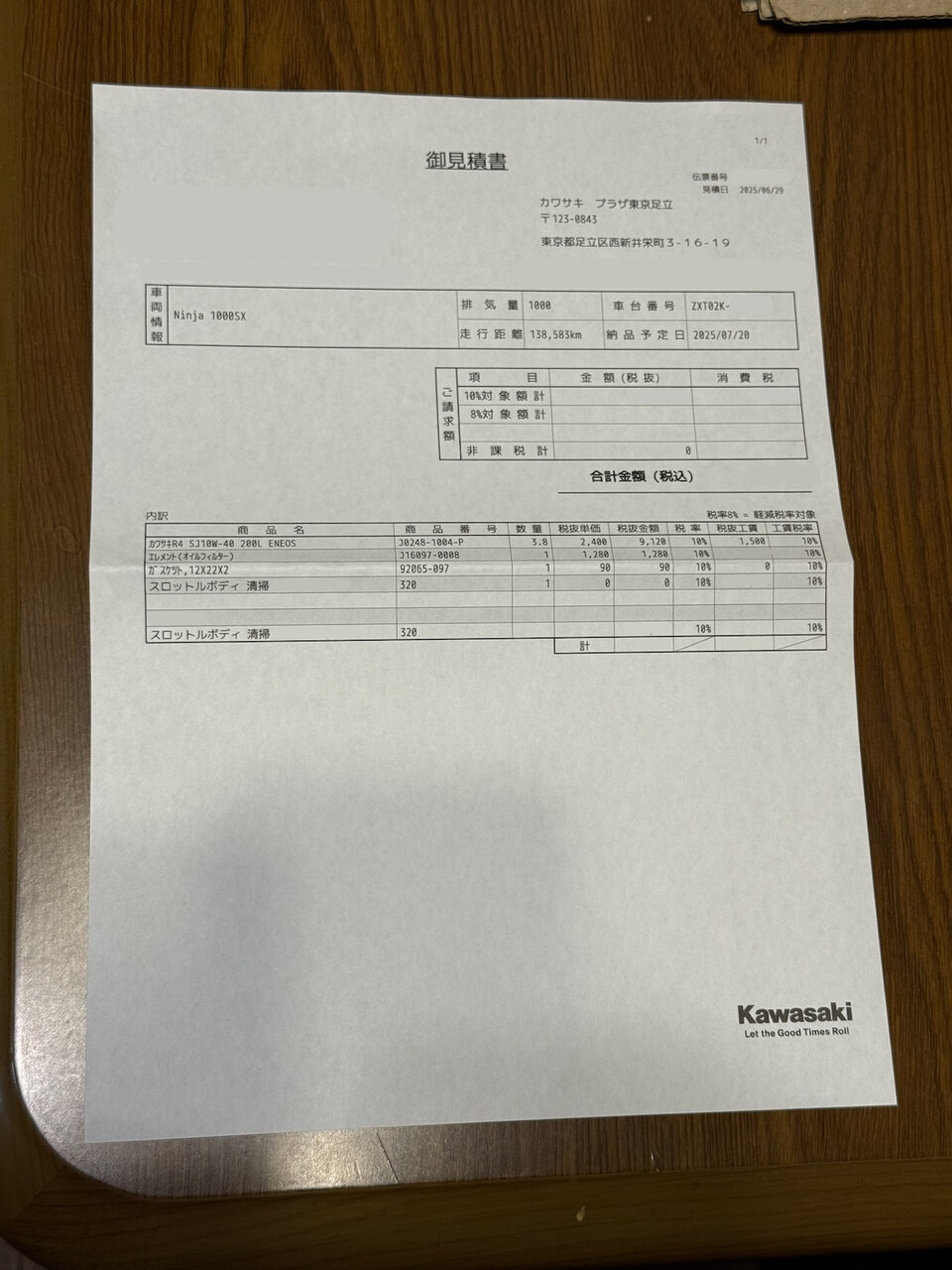 こういう気遣い・提案があるのでいつものカワサキプラザ東京足立さんから離れられないw
