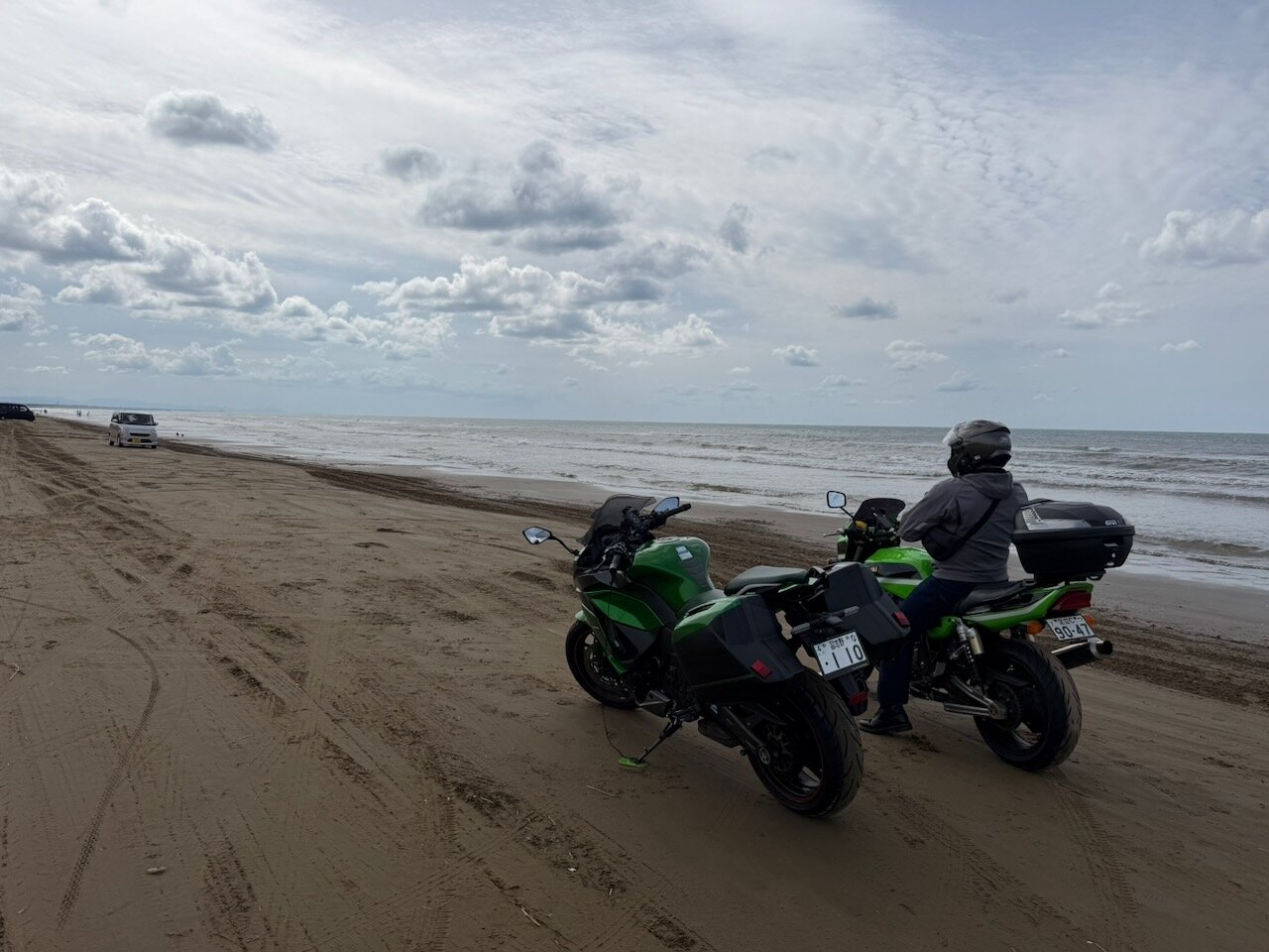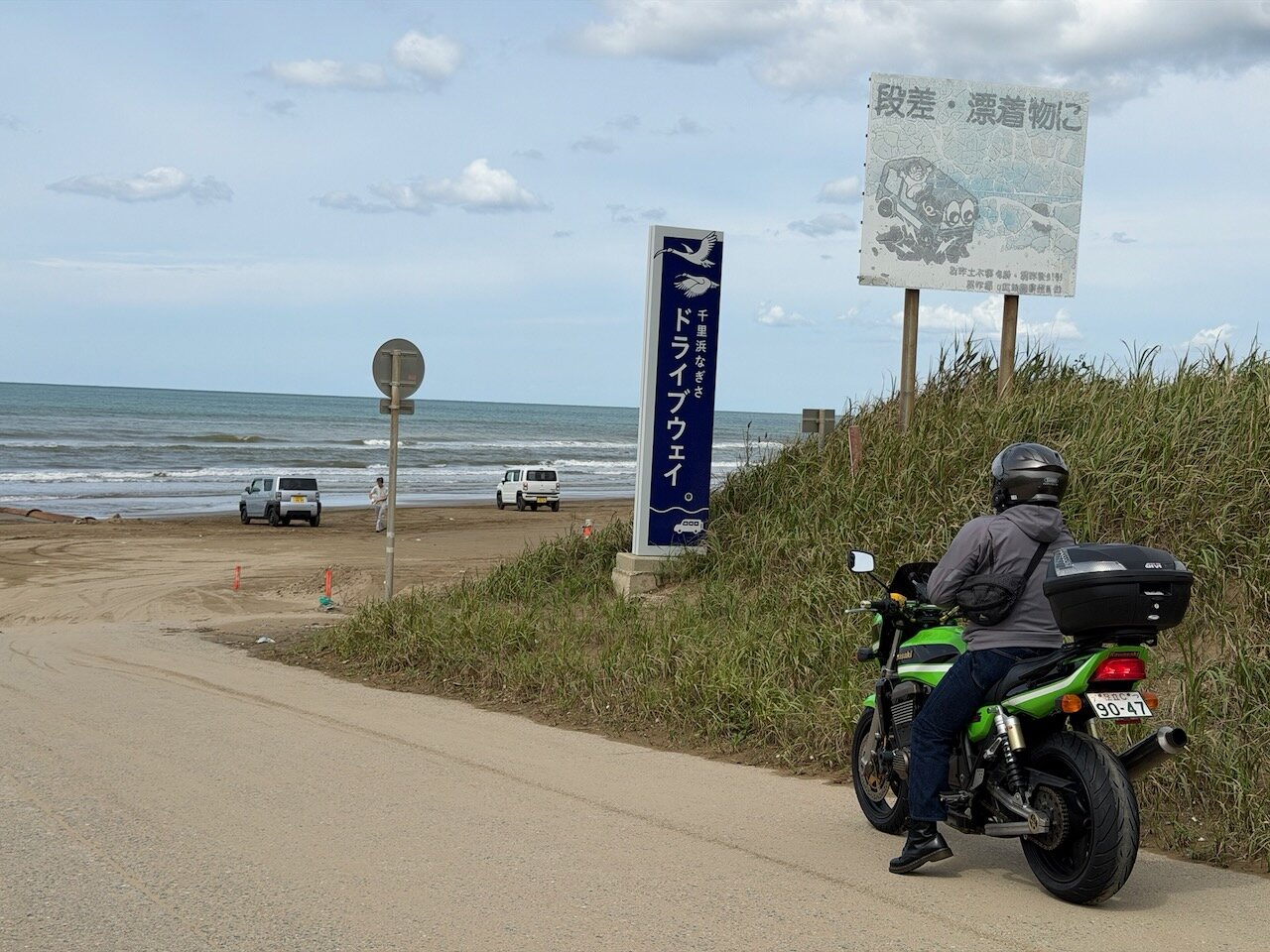 北陸ツーリング随一のスポットである、砂浜が国道指定されていて、波打ち際を自動車で通行可能な区間ですね。